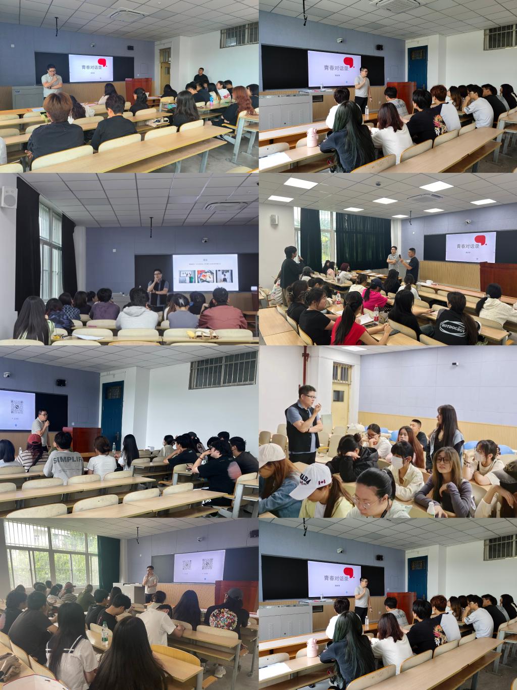 為進(jìn)一步提升人文學(xué)院學(xué)生職業(yè)生涯規(guī)劃意識(shí),引導(dǎo)學(xué)生樹(shù)立正確的擇業(yè)觀,幫助學(xué)生更好地樹(shù)立未來(lái)職業(yè)形象,看清未來(lái)就業(yè)形勢(shì),制定合理的就業(yè)目標(biāo)和階段性規(guī)劃,5月28日至5月31日,我院特邀優(yōu)秀校友、容智中國(guó)合伙人、北京市政集團(tuán)副總蔡乾鋒給2022級(jí)視覺(jué)傳達(dá)設(shè)計(jì)、環(huán)境設(shè)計(jì)兩個(gè)專(zhuān)業(yè)180名學(xué)生按班開(kāi)展《青春對(duì)話錄》職業(yè)生涯規(guī)劃主題講座。