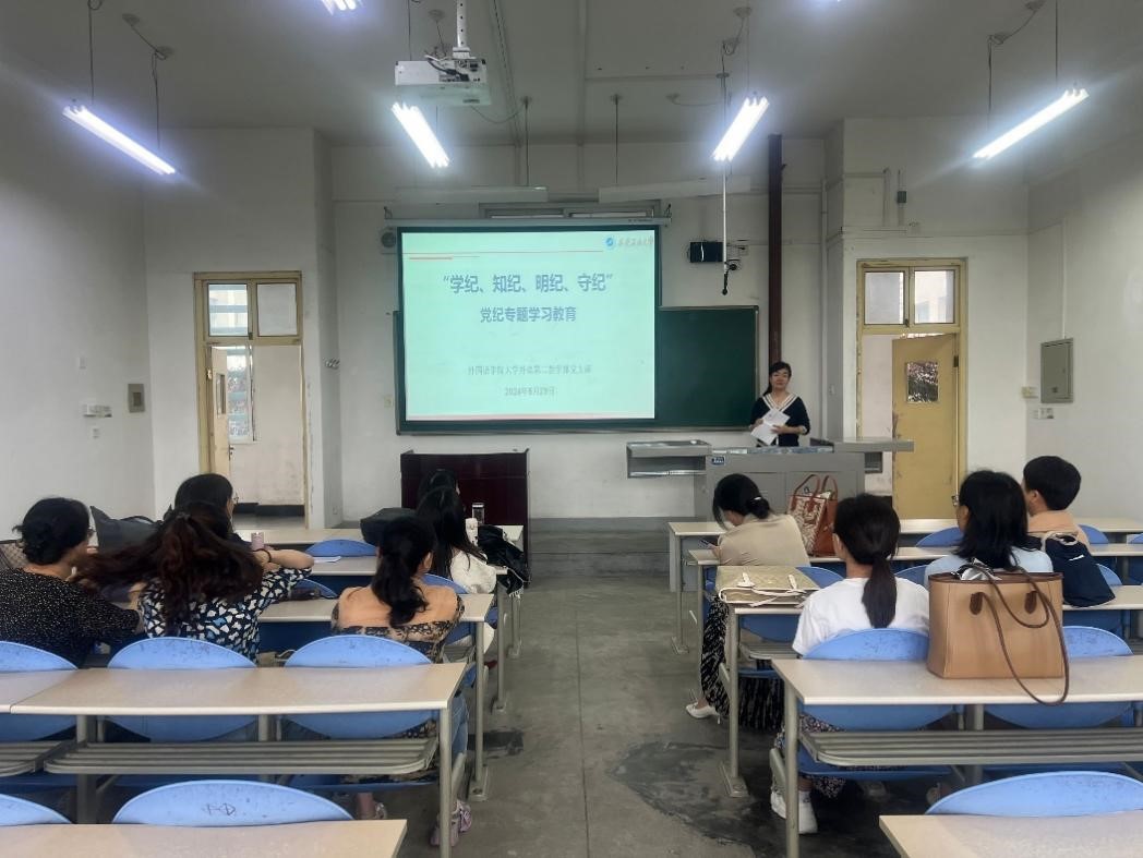 5月29日上午,外國語學(xué)院大學(xué)外語第二教學(xué)部黨支部在鄠邑校區(qū)A247召開“學(xué)紀(jì)、知紀(jì)、明紀(jì)、守紀(jì)”黨紀(jì)學(xué)習(xí)教育專題會議。會議由黨支部書記李紅主持,大學(xué)外語第二教學(xué)部黨支部全體黨員參加會議。