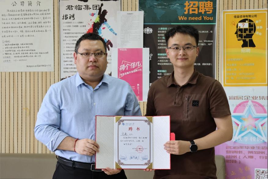 在交流中,史陽對(duì)立信會(huì)計(jì)師事務(wù)所在學(xué)院班級(jí)建設(shè)和就業(yè)工作等方面給予的大力支持表示感謝,他著重介紹了2024屆財(cái)會(huì)專業(yè)畢業(yè)生的人數(shù)規(guī)模、班級(jí)建設(shè)、學(xué)生獲獎(jiǎng)等基本情況,誠(chéng)摯邀請(qǐng)企業(yè)專家經(jīng)常到學(xué)校分享行業(yè)經(jīng)驗(yàn),并為張航頒發(fā)了“鐵人精神”校外兼職輔導(dǎo)員聘書。