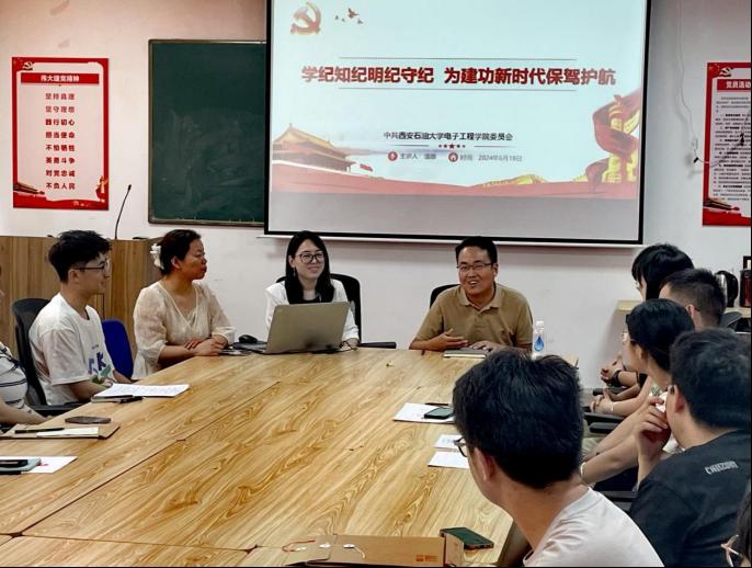 為推進(jìn)黨紀(jì)學(xué)習(xí)教育走深走實(shí),6月18日上午,電子工程學(xué)院黨委書記潘娜在華油能源樓905會(huì)議室為我院研究生黨員講授《學(xué)紀(jì)知紀(jì)明紀(jì)守紀(jì)為建功新時(shí)代保駕護(hù)航》黨紀(jì)學(xué)習(xí)教育專題黨課。研究生黨支部書記、支部委員、黨員代表60余人參加了黨課學(xué)習(xí)。