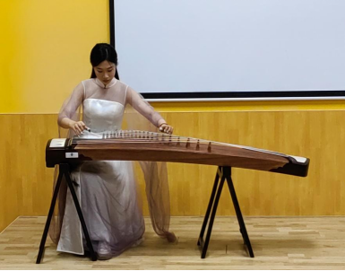《現(xiàn)代舞》的表演激起了孩童們舞動的心情,全場所有學(xué)生一起起身,與表演者們共同演藝,一時間音樂與舞蹈仿佛治愈了孩童們的身體“缺陷”。古箏曲《漁歌唱晚》把孩童們的舞動的身姿與高漲的情緒又拉回到了優(yōu)柔曼妙、恬靜美好的中國音樂美感中來。
