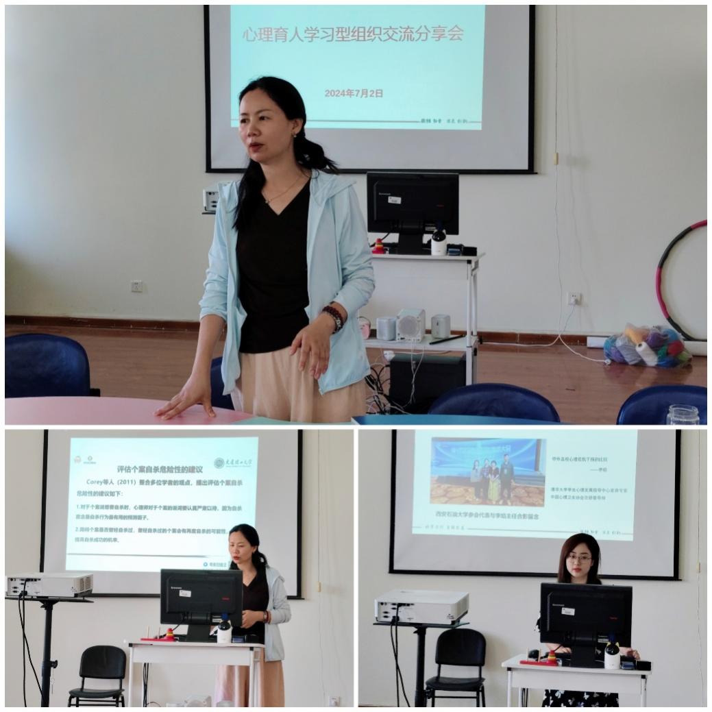 根據(jù)學生心理成長指導(dǎo)中心倡導(dǎo)的“一人學習,眾人受益”原則,每位外出參加會議或培訓的老師,均需在校內(nèi)進行分享。2024年7月2日,學生心理成長指導(dǎo)中心在鄠邑校區(qū)崇文樓427室舉辦了心理育人學習型組織活動——“第十六次全國心理衛(wèi)生學術(shù)大會”參會分享。全體專職心理老師和部分院(系)心理專干老師參加了本次分享交流會。