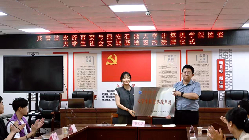 7月8日下午,計算機學院團委與共青團永濟市委在永濟市會議中心櫻花社區(qū)會議室舉行了校地合作簽約授牌儀式。西安石油大學方面,計算機學院團委書記喬曉、2022級團總支書記姚謙及10名社會實踐同學參加了本次活動。永濟市團委書記史曉媛,副書記高卓、樊政君,掛職副書記張國偉出席了儀式。