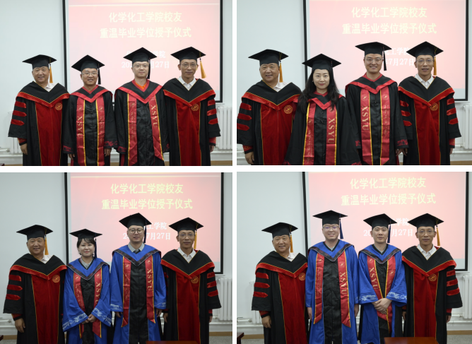 在座談會(huì)的最后環(huán)節(jié),學(xué)院還舉辦了校友重溫畢業(yè)學(xué)位授予儀式,由張君濤副校長(zhǎng)和屈撐囤教授為此次返校校友逐一撥穗。校友們穿上西安石油大學(xué)專屬學(xué)位服,再次重溫了當(dāng)年的美好感覺(jué)。