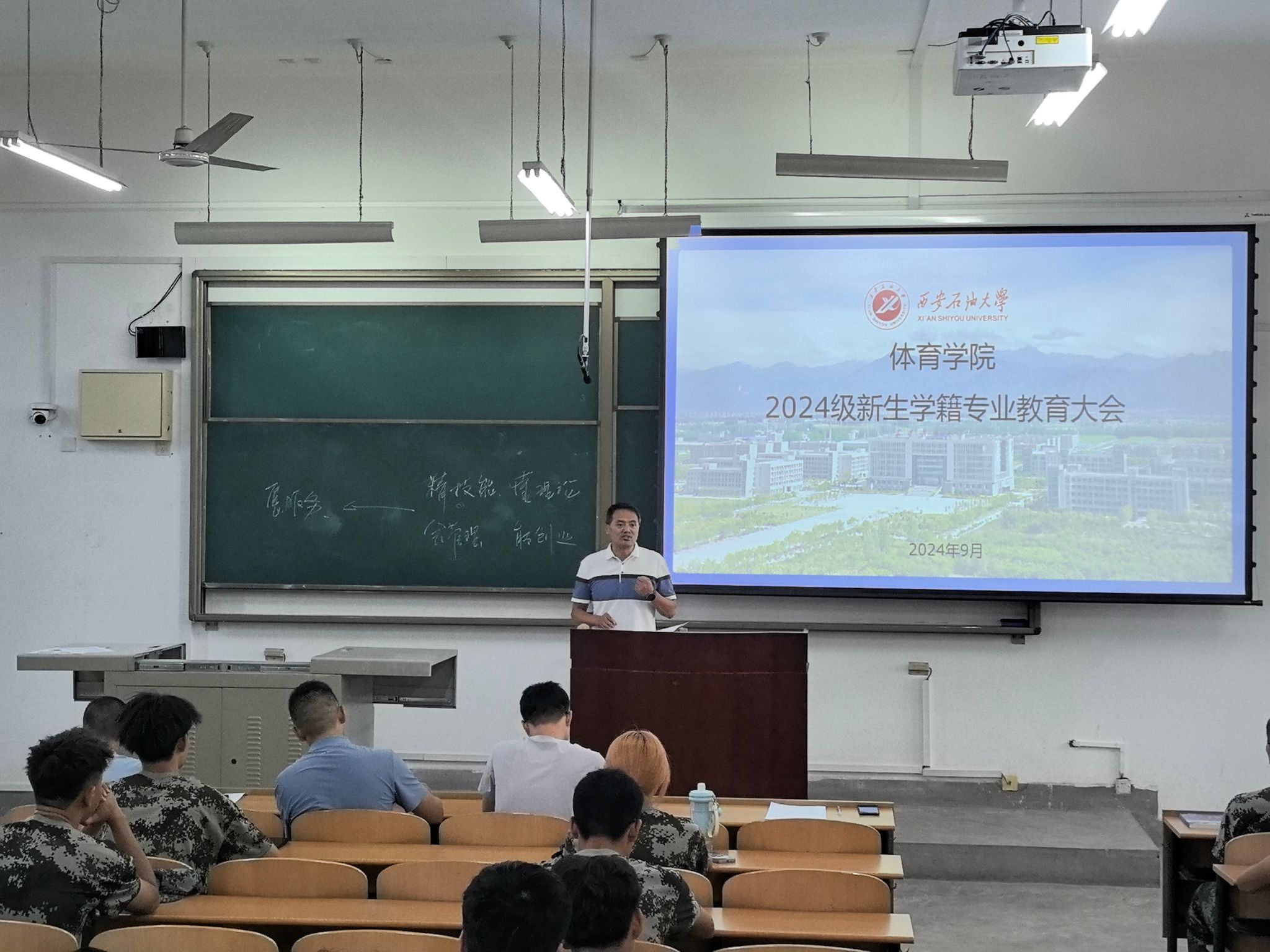 為指導(dǎo)和幫助2024級(jí)新生盡快了解和適應(yīng)新環(huán)境,熟悉所學(xué)專(zhuān)業(yè)的培養(yǎng)目標(biāo)、培養(yǎng)方式和畢業(yè)要求,更好地了解本科學(xué)生學(xué)籍管理?xiàng)l例、紀(jì)律處分條例及獎(jiǎng)助條例,做好學(xué)業(yè)規(guī)劃,快速適應(yīng)大學(xué)學(xué)習(xí),促進(jìn)學(xué)風(fēng)建設(shè)。9月8日下午,體院學(xué)院在鄠邑校區(qū)博思樓317教室召開(kāi)2024級(jí)新生見(jiàn)面會(huì)暨學(xué)籍專(zhuān)業(yè)教育大會(huì)。學(xué)院黨總支書(shū)記茍毅飛、院長(zhǎng)李壽邦、社會(huì)體育指導(dǎo)與管理專(zhuān)業(yè)教研室主任胥山出席大會(huì),會(huì)議由2024級(jí)新生輔導(dǎo)員張澤正主持。