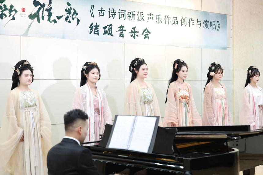 本場音樂會是2022年度全省藝術(shù)科學(xué)規(guī)劃項目(合作項目)的結(jié)項音樂會。音樂會涵蓋了八首原創(chuàng)古詩詞新派聲樂作品,重在突出古詩詞聲樂作品的新派創(chuàng)作手法,通過藝術(shù)的形式讓專業(yè)聲樂演唱者、業(yè)余聲樂愛好者都能夠喜愛。中華古詩詞優(yōu)秀傳統(tǒng)文化走進(jìn)了聲樂課堂,用新的藝術(shù)手段進(jìn)行傳播和普及,增強(qiáng)了學(xué)生的文化自信,提升了學(xué)生的審美核心素養(yǎng)。此項目中創(chuàng)作的聲樂作品多次在兄弟院校的聲樂課堂中、舞臺上實踐并取得了良好的教學(xué)與演出效果。