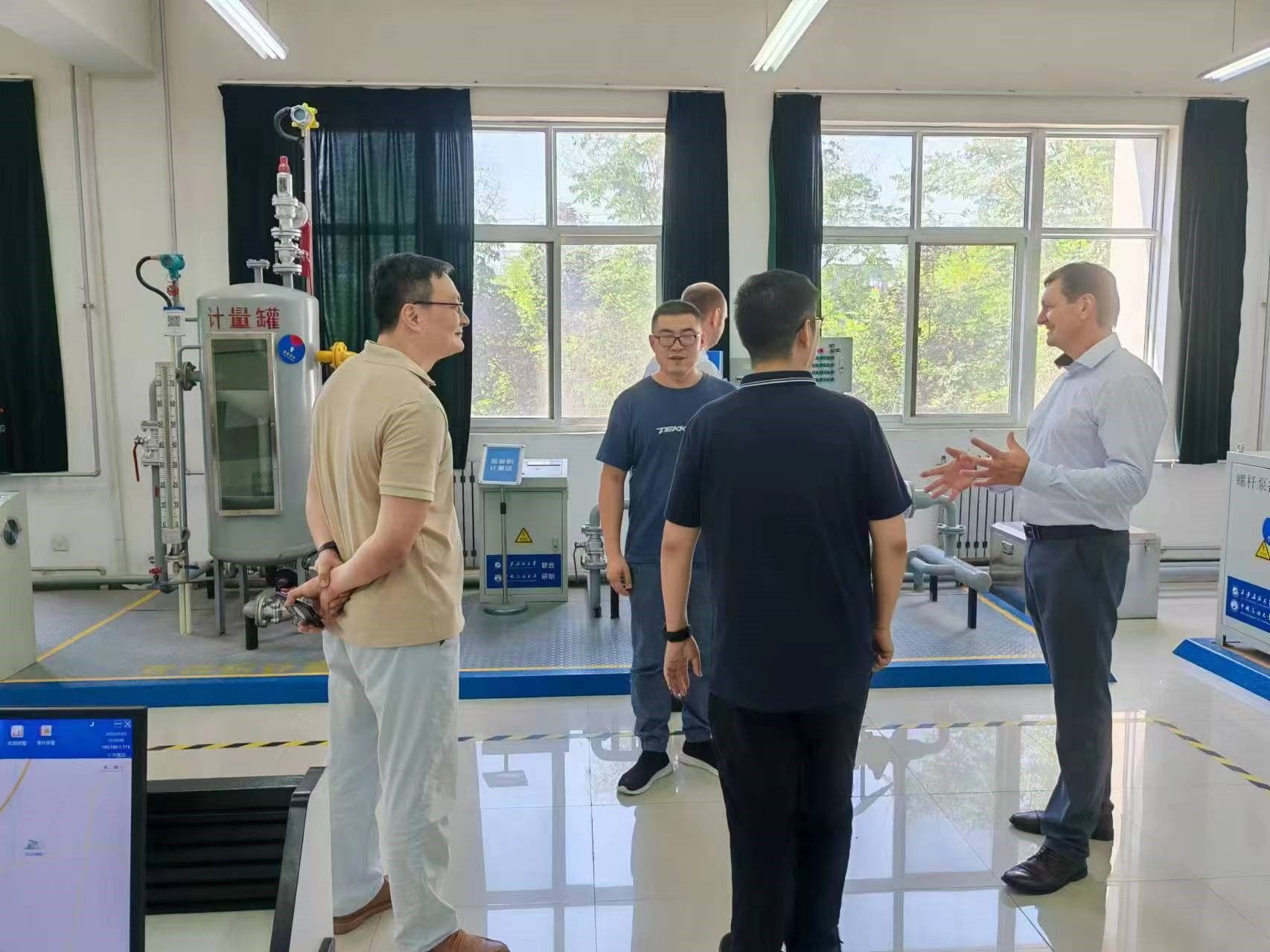3.完成白俄羅斯石油學(xué)科設(shè)計(jì)研究院院長(zhǎng)一行及鐵一中國(guó)際學(xué)校教師代表參觀接待工作。白俄羅斯國(guó)家石油公司石油科學(xué)研究設(shè)計(jì)院院長(zhǎng)亞歷山大·齊布蘭科夫、地質(zhì)開(kāi)發(fā)部副主任阿列克謝·庫(kù)德拉舒一行2人8月13日蒞臨我校鄠邑校區(qū)石油石化虛擬仿真實(shí)驗(yàn)教學(xué)中心參觀指導(dǎo)。