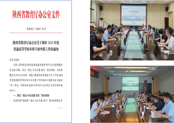 1.積極開(kāi)展專(zhuān)業(yè)設(shè)置優(yōu)化調(diào)整工作。根據(jù)教育部《關(guān)于開(kāi)展2024年度專(zhuān)業(yè)設(shè)置工作的通知》(教高司函〔2024〕7號(hào))及《陜西省教育廳辦公室關(guān)于做好2024年度普通高等學(xué)校本科專(zhuān)業(yè)申報(bào)工作的通知》(陜教教高辦〔2024〕26號(hào))文件,教務(wù)處積極學(xué)習(xí)領(lǐng)會(huì)文件精神,經(jīng)充分研討和調(diào)研,下發(fā)了《關(guān)于做好2024年本科專(zhuān)業(yè)設(shè)置及啟動(dòng)2025版專(zhuān)業(yè)人才培養(yǎng)方案修訂工作的通知》,并提供了西安石油大學(xué)本科專(zhuān)業(yè)招生率、就業(yè)落實(shí)率情況統(tǒng)計(jì)表(2020-2023年)、2021-2023年高校專(zhuān)業(yè)情況統(tǒng)計(jì)表、專(zhuān)業(yè)設(shè)置優(yōu)化調(diào)整參考意見(jiàn)等資料,積極促進(jìn)各院(系)開(kāi)展設(shè)置調(diào)整計(jì)劃。8月4日、8月29日,學(xué)校2次召開(kāi)了本科專(zhuān)業(yè)調(diào)整專(zhuān)題研討會(huì),張君濤副校長(zhǎng)對(duì)本科專(zhuān)業(yè)調(diào)整優(yōu)化作了全面部署;9月2日,學(xué)校召開(kāi)院系專(zhuān)業(yè)調(diào)整務(wù)虛會(huì)并進(jìn)一步研討確定了本年度專(zhuān)業(yè)調(diào)整方案。