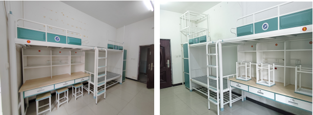 9.學(xué)生公寓改造。鄠邑校區(qū)7-11號(hào)學(xué)生公寓樓公共區(qū)域、部分畢業(yè)生宿舍墻面粉刷及設(shè)施維修,約24465.24平方米。改造后,不僅提升了樓體的美觀度,更為同學(xué)們提供了更加舒適的學(xué)習(xí)和生活環(huán)境。為了提升2024級(jí)新生宿舍儲(chǔ)物空間,后勤處暑期購(gòu)置并安裝了834套行李架。每套可容納四個(gè)大行李箱,采用上下雙層設(shè)計(jì),二氧化碳保護(hù)焊接,表面經(jīng)多重工藝處理,環(huán)保健康,無(wú)異味甲醛。鄠邑校區(qū)1至4號(hào)公寓樓西側(cè)新建了電動(dòng)自行車(chē)停車(chē)棚及充電樁,有效緩解了周邊亂停亂放和充電樁不足問(wèn)題。車(chē)棚采用10×10厘米方鋼結(jié)構(gòu),頂棚為藍(lán)色隔熱陽(yáng)光板,安全穩(wěn)固,外觀美觀。車(chē)棚總面積380平方米,新增144個(gè)充電端口。