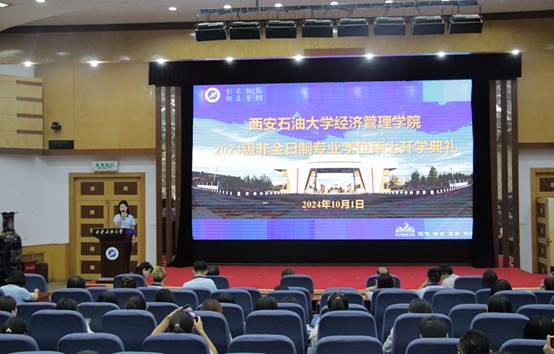 在新中國75周年華誕之際,西安石油大學(xué)經(jīng)濟(jì)管理學(xué)院于10月1日下午在雁塔校區(qū)西階學(xué)術(shù)報(bào)告廳隆重舉行了2024級(jí)非全日制專業(yè)學(xué)位碩士研究生開學(xué)典禮。學(xué)院黨委書記談建勤、院長王君萍、黨委副書記楊生強(qiáng)、副院長李春霄、MBA項(xiàng)目負(fù)責(zé)人黃莉、MPAcc項(xiàng)目負(fù)責(zé)人寧宇新及學(xué)院相關(guān)老師出席典禮,典禮由科研與研究生辦公室主任武歡主持。來自全國各地的新生齊聚一堂,共同開啟了他們嶄新的學(xué)術(shù)旅程。
