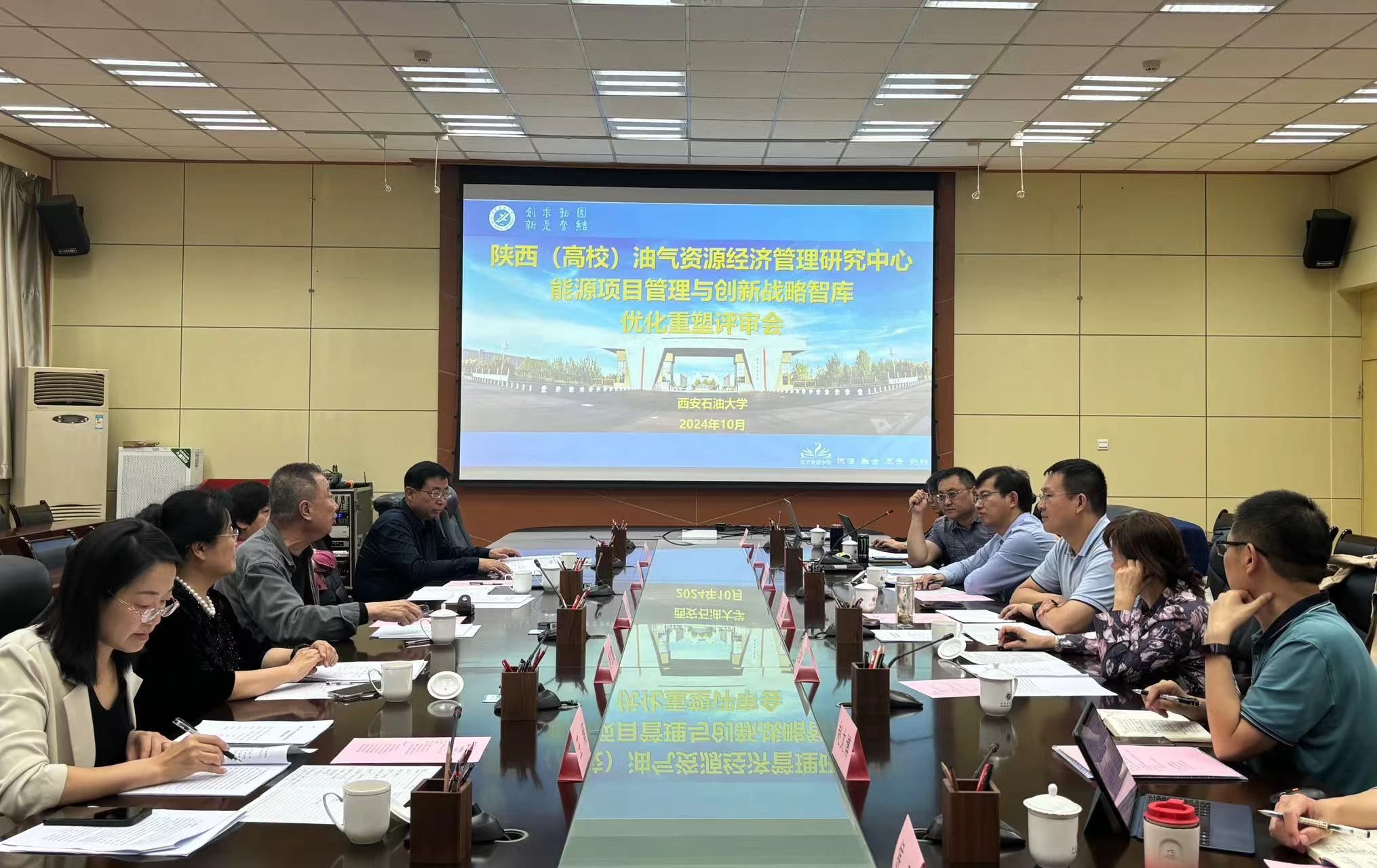 為深入學(xué)習(xí)貫徹黨的二十大和二十屆二中、三中全會(huì)精神,落實(shí)《陜西高??蒲衅脚_(tái)優(yōu)化重塑實(shí)施意見》要求,根據(jù)省教育廳有關(guān)工作要求,10月7日下午,經(jīng)濟(jì)管理學(xué)院在雁塔校區(qū)第一會(huì)議室組織召開了省教育廳科研平臺(tái)優(yōu)化重塑評(píng)審會(huì)。會(huì)議邀請(qǐng)西安財(cái)經(jīng)大學(xué)胡健教授、西安交通大學(xué)郭菊娥教授、西安科技大學(xué)李紅霞教授、西安財(cái)經(jīng)大學(xué)科研處郝新軍處長、西安外國語大學(xué)科研處王娟副處長組成評(píng)審專家組,對(duì)陜西(高校)油氣資源經(jīng)濟(jì)管理研究中心和能源項(xiàng)目管理與創(chuàng)新戰(zhàn)略智庫兩個(gè)科研平臺(tái)的建設(shè)情況進(jìn)行了考察評(píng)審。學(xué)??蒲刑?、經(jīng)濟(jì)管理學(xué)院負(fù)責(zé)人以及兩個(gè)平臺(tái)的相關(guān)管理人員參加評(píng)審會(huì)。