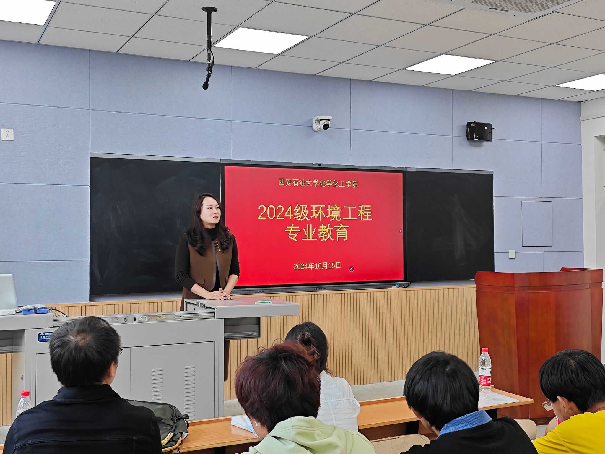 為進一步增強2024級環(huán)境工程專業(yè)新生學習信心,深入了解專業(yè)領域,充分理解專業(yè)優(yōu)勢及發(fā)展方向,10月15日下午,化學化工學院在鄠邑校區(qū)A103教室召開環(huán)境工程第二場專業(yè)教育大會。環(huán)境工程系于恒和張榕老師擔任主講人,環(huán)境工程系教師魚濤、盧聰以及2024級全體環(huán)境專業(yè)新生參加本次教育大會。會議由2024級輔導員王蓉主持。