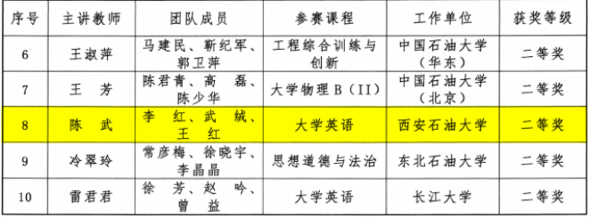 近日,首屆“中國石油教育學(xué)會(huì)教學(xué)創(chuàng)新大賽”在西南石油大學(xué)圓滿落幕。我院陳武教授帶領(lǐng)李紅、武絨、王紅組成的大學(xué)英語教學(xué)團(tuán)隊(duì)參加了基礎(chǔ)課程組比賽,并榮獲二等獎(jiǎng)。