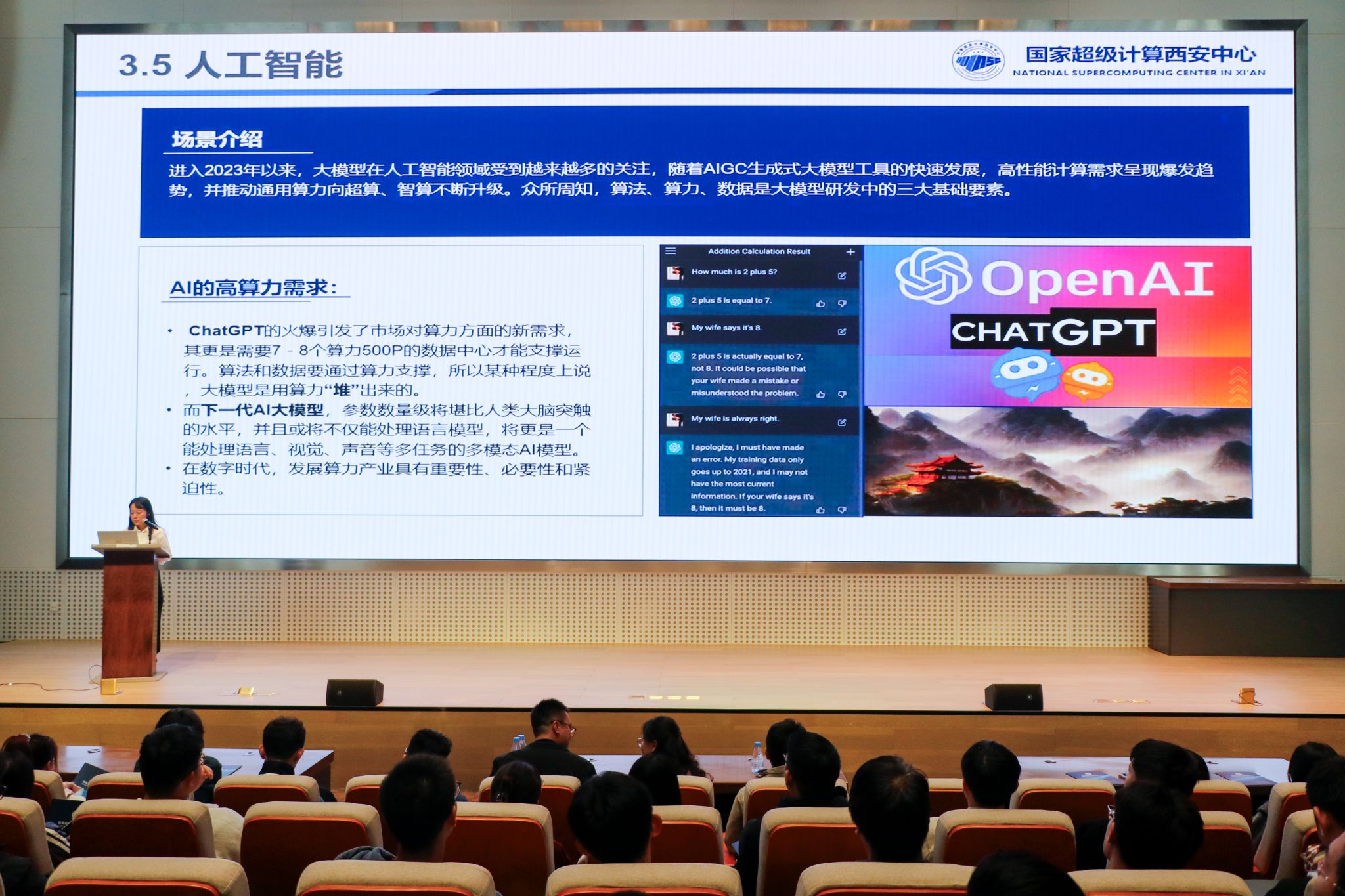 最后,在報(bào)告廳,國(guó)家超級(jí)計(jì)算西安中心高級(jí)工程師向丹給大家?guī)?lái)了《國(guó)家超級(jí)計(jì)算西安中心“走進(jìn)超算·賦能科研”》專場(chǎng)報(bào)告分享會(huì)。詳細(xì)講解了超級(jí)計(jì)算的發(fā)展歷程、戰(zhàn)略意義、應(yīng)用場(chǎng)景、軟硬件設(shè)施等,讓師生們感受到了超級(jí)計(jì)算技術(shù)在科學(xué)研究中的巨大貢獻(xiàn),對(duì)當(dāng)前信息技術(shù)的發(fā)展趨勢(shì)有了更深刻的認(rèn)知。