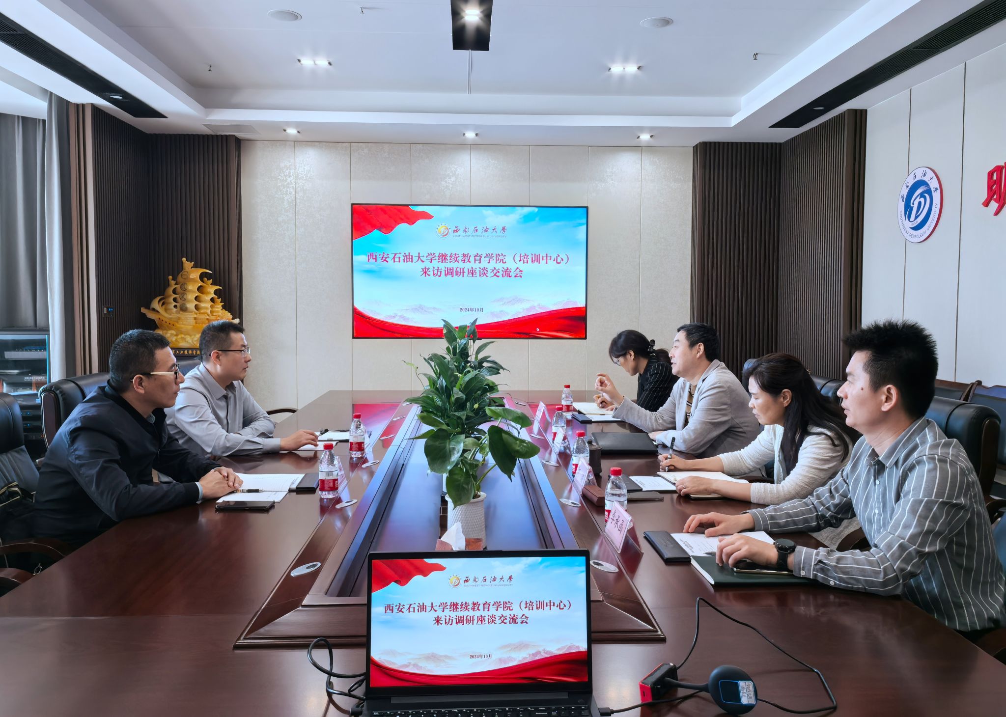 與西南石油大學繼續(xù)教育學院座談時,院長朱治富對林紅先院長一行的到訪表示熱烈歡迎,并深情地回顧了雙方在長期以來結(jié)下的深厚友誼與近年來的相互交流走訪。兩院均根植繼續(xù)教育發(fā)展,早期均致力于石油石化行業(yè)員工學歷提升、技能升級、知識更新,近期均服務(wù)于石油石化行業(yè)技術(shù)革新與地方經(jīng)濟發(fā)展并重。雙方圍繞發(fā)展歷程、組織機構(gòu)、人員配置、辦學思路、管理模式以及基地建設(shè)、市場開拓、項目設(shè)計等方面作了交流研討。同時,雙方均表示希望在未來能夠加強交流與合作,互通有無、互學共鑒,共同推動繼續(xù)教育事業(yè)發(fā)展。