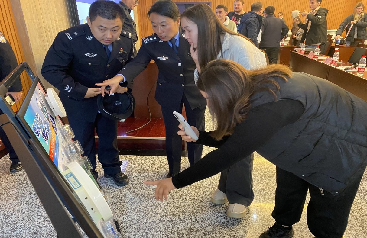 李敦警官詳細講解了宗教管理及互聯(lián)網(wǎng)使用的相關法律規(guī)定。李慧中警官向國際學生詳細介紹了簽證申請、居留許可辦理、外國人臨時住宿登記和出入境注意事項等內(nèi)容。張楊警官重點介紹了禁毒相關法律法規(guī),講解毒品成癮原理、生理心理危害性,提醒學生時刻保持警惕,遠離毒品。席擘警官針對國際學生在日常生活中可能遇到的治安、交通和住宿等法律問題進行了詳細介紹,提供了實用的法律建議和求助途徑。