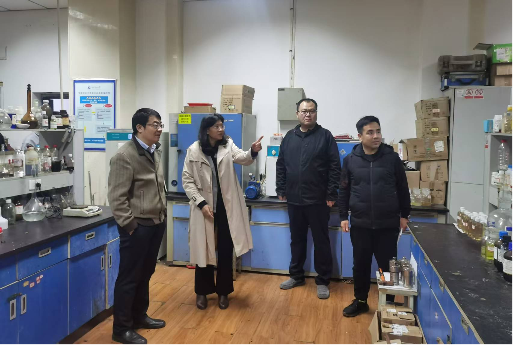 在檢查過(guò)程中,檢查組認(rèn)真查看了實(shí)驗(yàn)室運(yùn)行狀況,并和實(shí)驗(yàn)室負(fù)責(zé)老師和同學(xué)進(jìn)行了交流。同時(shí),對(duì)實(shí)驗(yàn)室的安全隱患進(jìn)行了仔細(xì)排查,特別是?;返氖褂帽4?、易制毒試劑的管理、氣瓶的固定、消防設(shè)施的配備、疏散通道是否暢通,對(duì)于檢查中發(fā)現(xiàn)的問(wèn)題,及時(shí)進(jìn)行記錄整改。