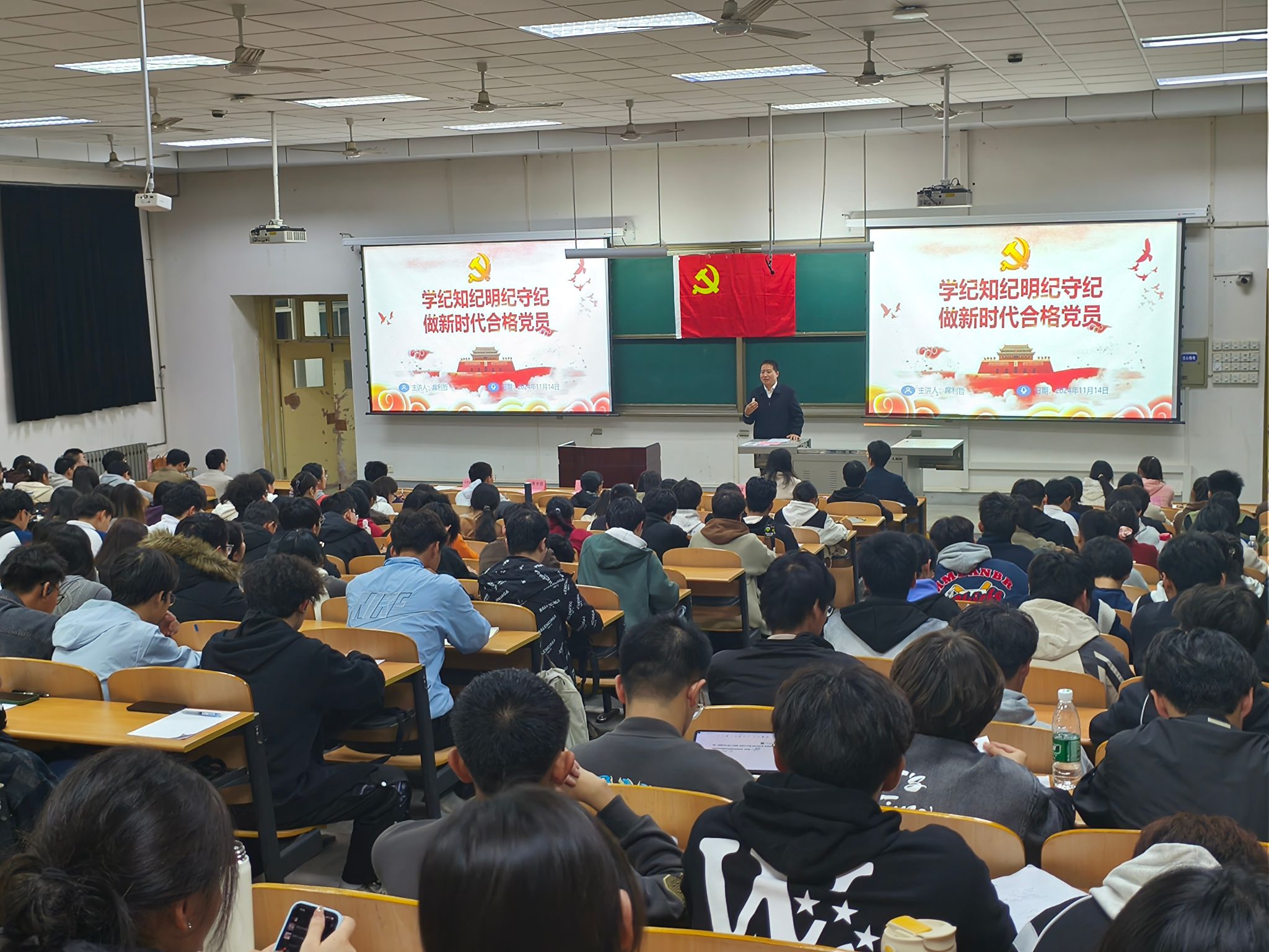 開班儀式后,理學(xué)院黨委書記席利哲作了培訓(xùn)班第一講。他以《學(xué)紀(jì)知紀(jì)明紀(jì)守紀(jì),做新時(shí)代合格黨員》為主題,通過與多名同學(xué)互動(dòng)提問的方式深入淺出地講解了新時(shí)代合格黨員的標(biāo)準(zhǔn)和內(nèi)涵,一要講政治、有信念,確保在鑄魂立根上合格;二要講規(guī)矩、有紀(jì)律,確保在遵規(guī)守紀(jì)上合格;三要講道德、有品行,確保在崇德修身上合格;四要講奉獻(xiàn)、有作為,確保在干事創(chuàng)業(yè)上合格。他指出,學(xué)紀(jì)、知紀(jì)、明紀(jì)、守紀(jì)是每個(gè)黨員的必修課,學(xué)紀(jì)是基礎(chǔ),知紀(jì)是前提,明紀(jì)是根本,守紀(jì)是關(guān)鍵,要深刻認(rèn)識(shí)黨的紀(jì)律在教育引導(dǎo)、警示預(yù)防、懲戒糾錯(cuò)方面的功能,自律和他律相結(jié)合的實(shí)質(zhì),以及加強(qiáng)黨的紀(jì)律建設(shè)的重要性。他為全體參訓(xùn)學(xué)員解讀了《中國共產(chǎn)黨紀(jì)律處分條例》的主要內(nèi)容和負(fù)面清單,以典型案例生動(dòng)詮釋了黨的紀(jì)律的嚴(yán)肅性和權(quán)威性。最后,他鼓勵(lì)大家努力學(xué)習(xí),爭(zhēng)取早日入黨,把遵規(guī)守紀(jì)內(nèi)化為思想和行動(dòng)自覺,敬畏法紀(jì),從小事做起,在日常堅(jiān)守,以新時(shí)代合格黨員的標(biāo)準(zhǔn)嚴(yán)格要求自己,跑好中國式現(xiàn)代化的接力棒,在民族復(fù)興的宏偉征程中寫就青春的華彩篇章。