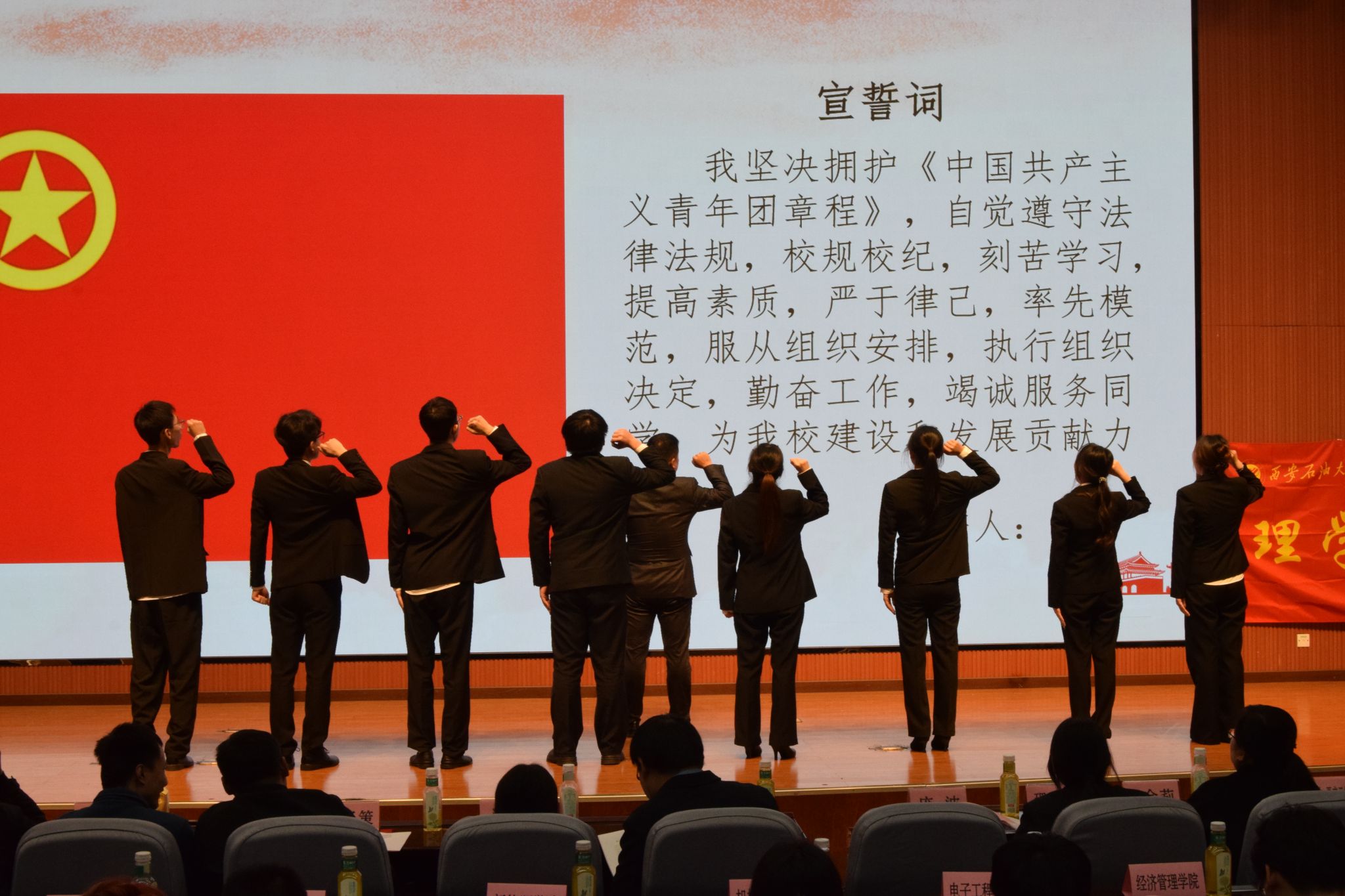 大會(huì)通過無記名投票,差額選舉方式順利選舉產(chǎn)生了理學(xué)院新任團(tuán)委委員、新一屆學(xué)生委員會(huì)委員。理學(xué)院團(tuán)委書記龐波帶領(lǐng)新當(dāng)選的委員面向國旗莊嚴(yán)宣誓就職。