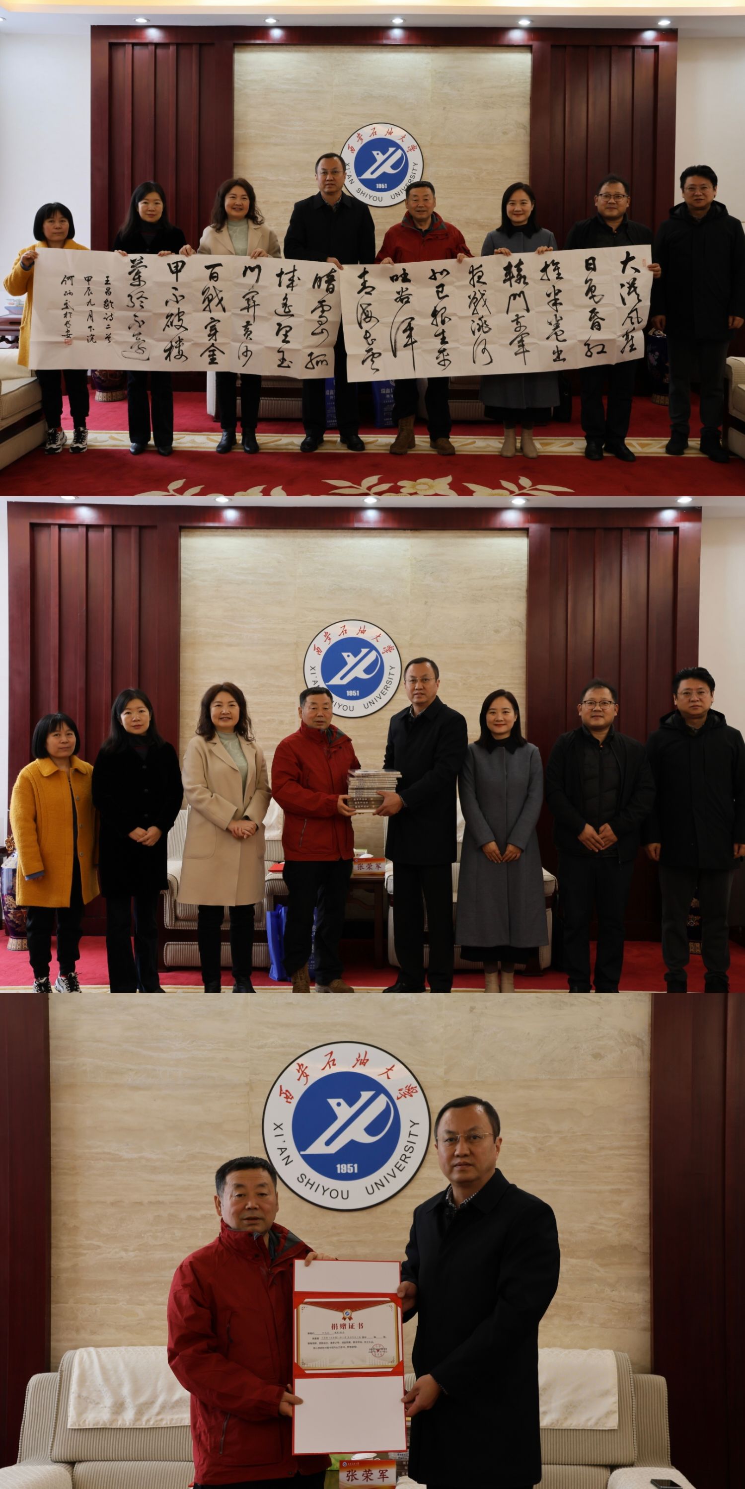 11月19日下午,陜西省社會(huì)科學(xué)院研究員、陜西省古籍整理辦公室主任、西北大學(xué)藝術(shù)研究院副院長(zhǎng)何炳武先生來校交流,并向?qū)W校圖書館捐贈(zèng)書法、專著作品。捐贈(zèng)儀式在我校鄠邑校區(qū)圖書館一樓貴賓室舉行,副校長(zhǎng)張榮軍代表學(xué)校會(huì)見何炳武先生,圖書館、人文學(xué)院相關(guān)負(fù)責(zé)人參加捐贈(zèng)儀式。