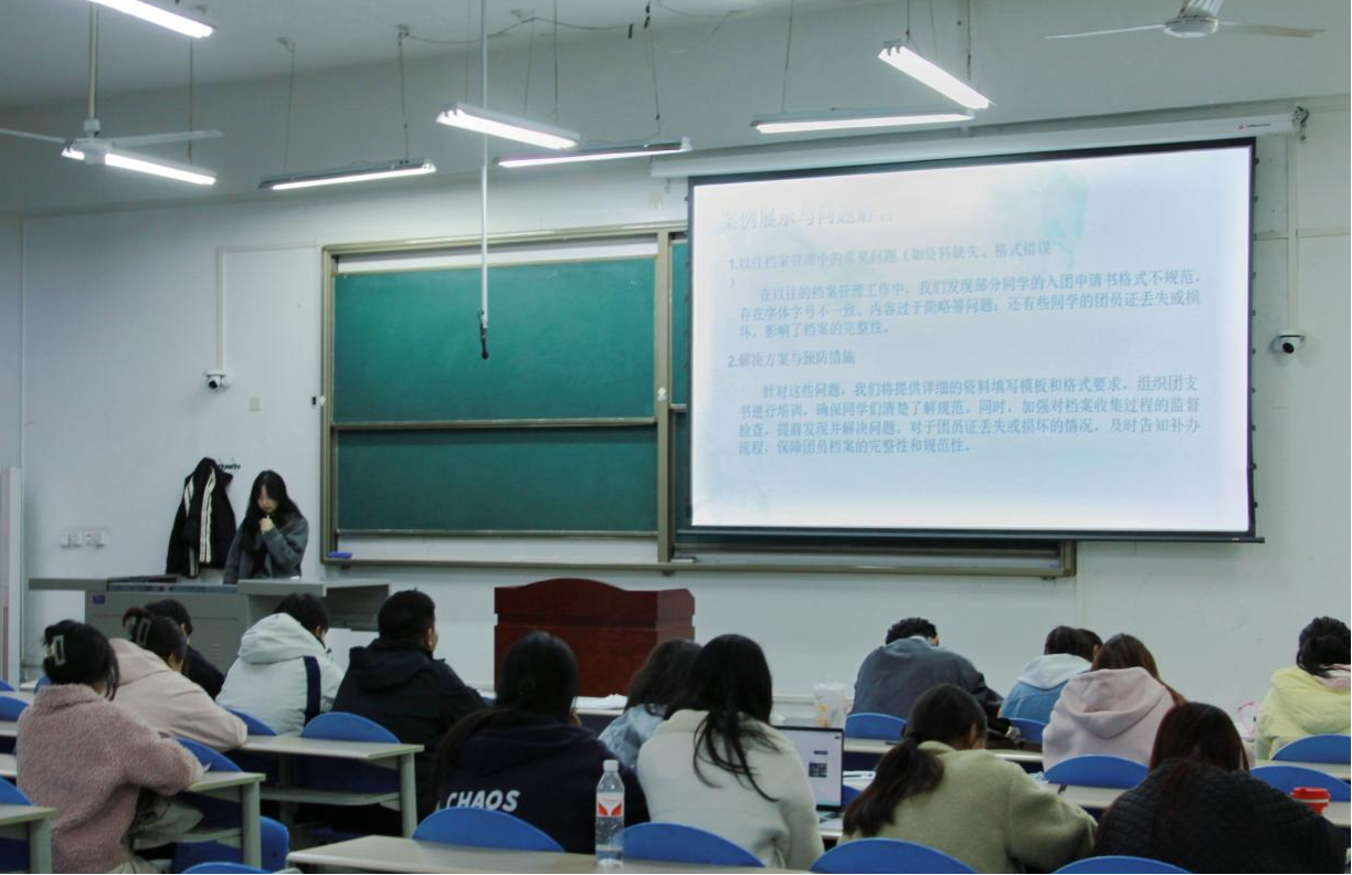 11月20日,人文學(xué)院團(tuán)委學(xué)生會(huì)組織部部長(zhǎng)郭雨涵帶來(lái)了“團(tuán)務(wù)工作實(shí)務(wù)”主題講座,2024級(jí)全體團(tuán)支書(shū)、輔導(dǎo)員助理以及組織部干事參加。本次講座圍繞著團(tuán)務(wù)工作的實(shí)際操作展開(kāi),為大學(xué)生團(tuán)干部講解了具體的基礎(chǔ)團(tuán)務(wù)工作操作方法與智慧團(tuán)建的使用說(shuō)明。在講座中,郭雨涵列舉了日常工作可能面臨的問(wèn)題,并且給出了解決方法,她強(qiáng)調(diào),在收集資料的時(shí)候確保內(nèi)容和數(shù)量正確是至關(guān)重要的。對(duì)于智慧團(tuán)建這一網(wǎng)絡(luò)系統(tǒng),她表示,智慧團(tuán)建是現(xiàn)代團(tuán)務(wù)工作的重要信息化平臺(tái),也是各位團(tuán)干部展開(kāi)團(tuán)務(wù)工作的重要網(wǎng)絡(luò)陣地,各位團(tuán)干部需要牢牢掌握系統(tǒng)的使用方法,運(yùn)用網(wǎng)絡(luò)工具更好地服務(wù)同學(xué)。