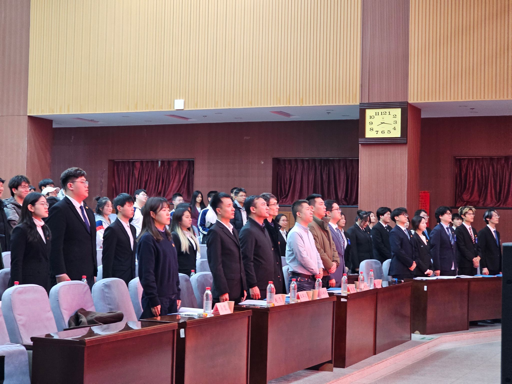 大會在莊嚴(yán)的國歌聲中正式拉開帷幕。屈敏佳宣讀批復(fù)并代表學(xué)院黨委致開幕詞,向到場嘉賓、團(tuán)學(xué)代表們表示熱烈歡迎,向校團(tuán)委及各兄弟院系一直以來對學(xué)院團(tuán)學(xué)工作的大力支持表示衷心感謝。他表示,團(tuán)學(xué)組織作為聯(lián)系學(xué)院與學(xué)生的橋梁和紐帶,承擔(dān)著引領(lǐng)青年、服務(wù)青年、凝聚青年的重要職責(zé),希望全體團(tuán)學(xué)干部能夠繼承和發(fā)揚(yáng)優(yōu)良傳統(tǒng),勇于創(chuàng)新,不斷提升團(tuán)學(xué)工作水平,為學(xué)校和學(xué)院高質(zhì)量發(fā)展貢獻(xiàn)青春力量。
