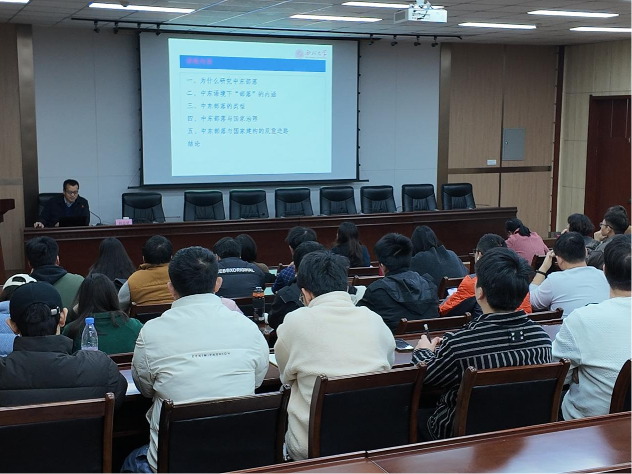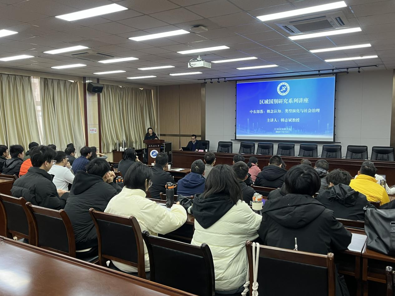 12月4日上午,區(qū)域國別研究院邀請(qǐng)西北大學(xué)韓志斌教授在雁塔校區(qū)會(huì)議中心第五會(huì)議室作了題為《中東部落:概念認(rèn)知、類型演化與社會(huì)治理》的學(xué)術(shù)講座。講座由區(qū)域國別研究院執(zhí)行院長劉輝主持,研究院專兼職研究人員及工程技術(shù)與管理人員國際化能力培訓(xùn)班學(xué)員共同聆聽了報(bào)告。