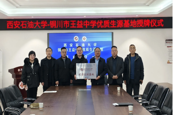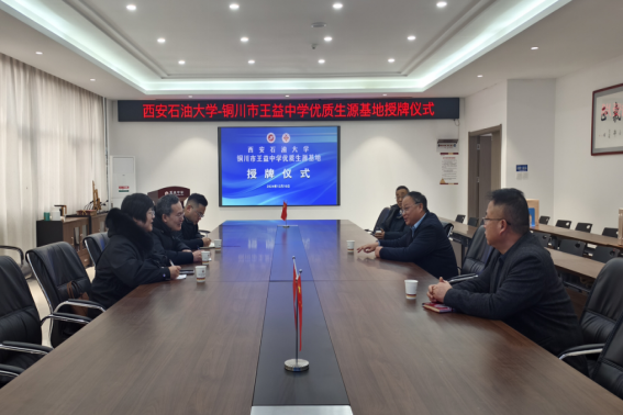 張新奇代表銅川王益中學(xué)對我院一行來校共建“優(yōu)秀生源基地”表示熱烈歡迎和衷心感謝,并介紹了學(xué)校的辦學(xué)規(guī)模、辦學(xué)精神、校園文化及近年來的發(fā)展情況。希望通過此次授牌,進一步加強雙方交流合作,幫助學(xué)生充分了解西安石油大學(xué)相關(guān)招生情況。