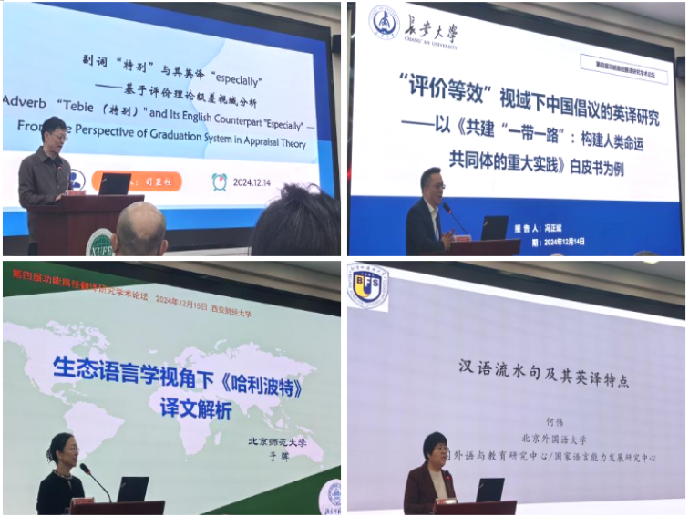 2024年12月14、15日,第四屆功能路徑翻譯研究論壇在西安財經(jīng)大學成功舉辦。來自北京第二外國語學院、北京師范大學、北京外國語大學、中山大學、等多所省外大學和長安大學、西安郵電大學、西安理工大學、陜西科技大學等省內(nèi)院校的專家、學者齊聚一堂,共同探討依托系統(tǒng)功能語言學的功能路徑翻譯研究的發(fā)展、融合和創(chuàng)新。外國語學院副院長陳武、翻譯系主任秦艷霞、英語系教師苗旸參加了此次論壇。