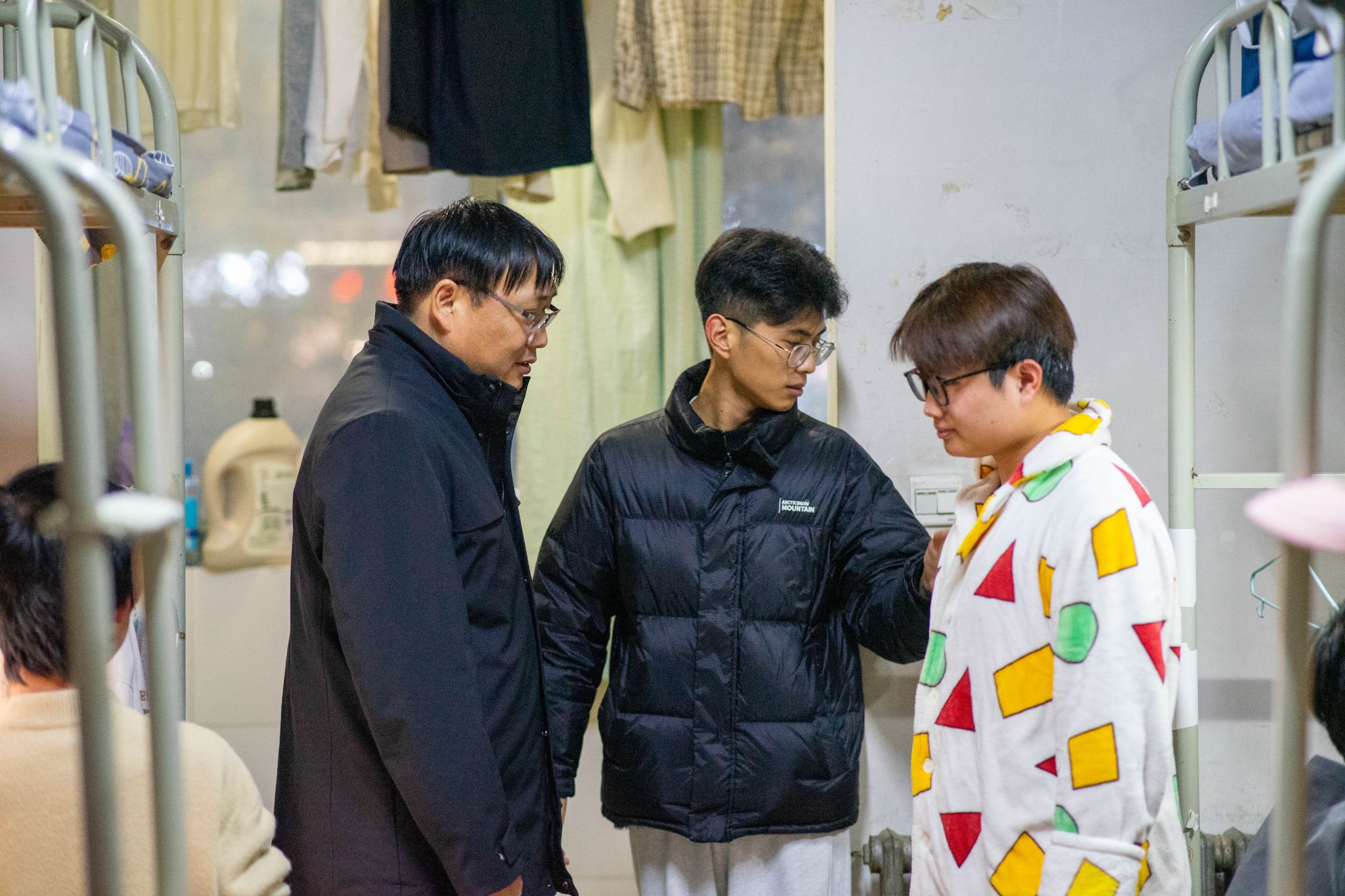 11月25日,理學院副書記楊富民、2022級以及2023級輔導員李猛共同走訪了學院學生宿舍,與學生面對面交流,了解他們的生活和學習情況,并重點檢查了宿舍的安全隱患。楊富民強調了宿舍安全的重要性,提醒學生們要時刻保持警惕,注意用電安全、防火防盜等。同時,他還鼓勵學生們要相互關心、相互幫助,共同維護宿舍的安全和穩(wěn)定。