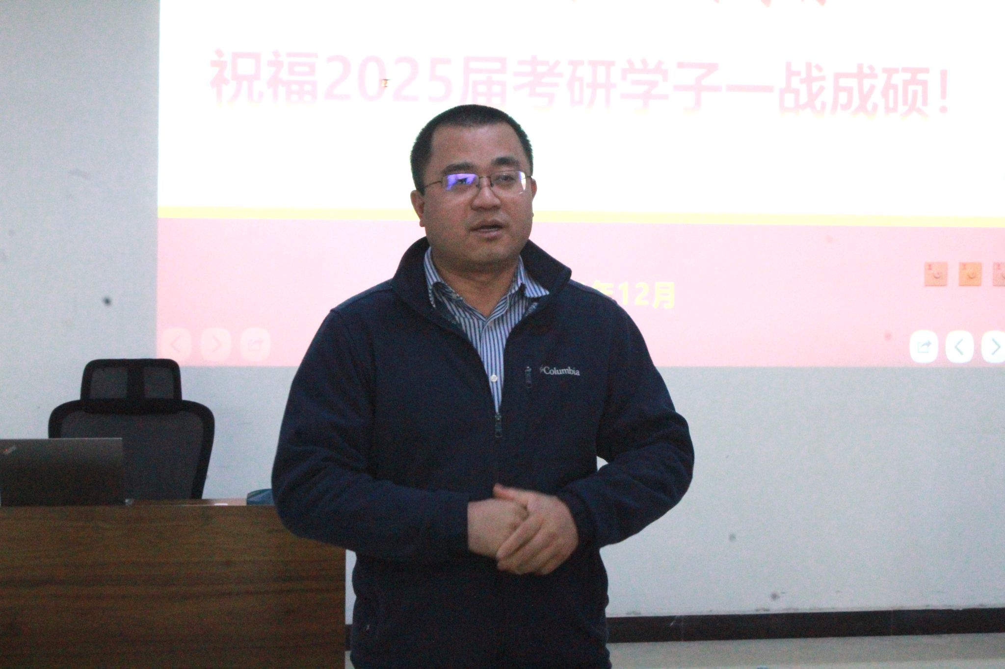 黃海在發(fā)言中進(jìn)一步表達(dá)了對(duì)考研學(xué)子的關(guān)心與支持,他表示,學(xué)院始終將學(xué)生的成長(zhǎng)與發(fā)展放在首位,將竭盡全力為同學(xué)們提供必要的支持與保障。他向同學(xué)們提出了三點(diǎn)期望,一是珍惜機(jī)會(huì),全力以赴。考研是一次寶貴的機(jī)會(huì),要珍惜這次機(jī)會(huì),全力以赴,為自己的未來(lái)奮斗,“行百里者半九十,要堅(jiān)持考完每一場(chǎng)考試,答完每一張卷子。二是保持自信,勇往直前。自信是成功的基石,只有相信自己,才能勇攀高峰,領(lǐng)略更廣闊的風(fēng)景,要保持自信,相信自己的實(shí)力,定能一戰(zhàn)成碩。三是展望未來(lái),規(guī)劃人生。樹(shù)立職業(yè)生涯規(guī)劃的意識(shí),選擇自己喜歡且適合的科學(xué)研究方向,為未來(lái)的職業(yè)發(fā)展打下堅(jiān)實(shí)的基礎(chǔ),要勇于追求夢(mèng)想,不斷挑戰(zhàn)自我,實(shí)現(xiàn)自己的人生價(jià)值。