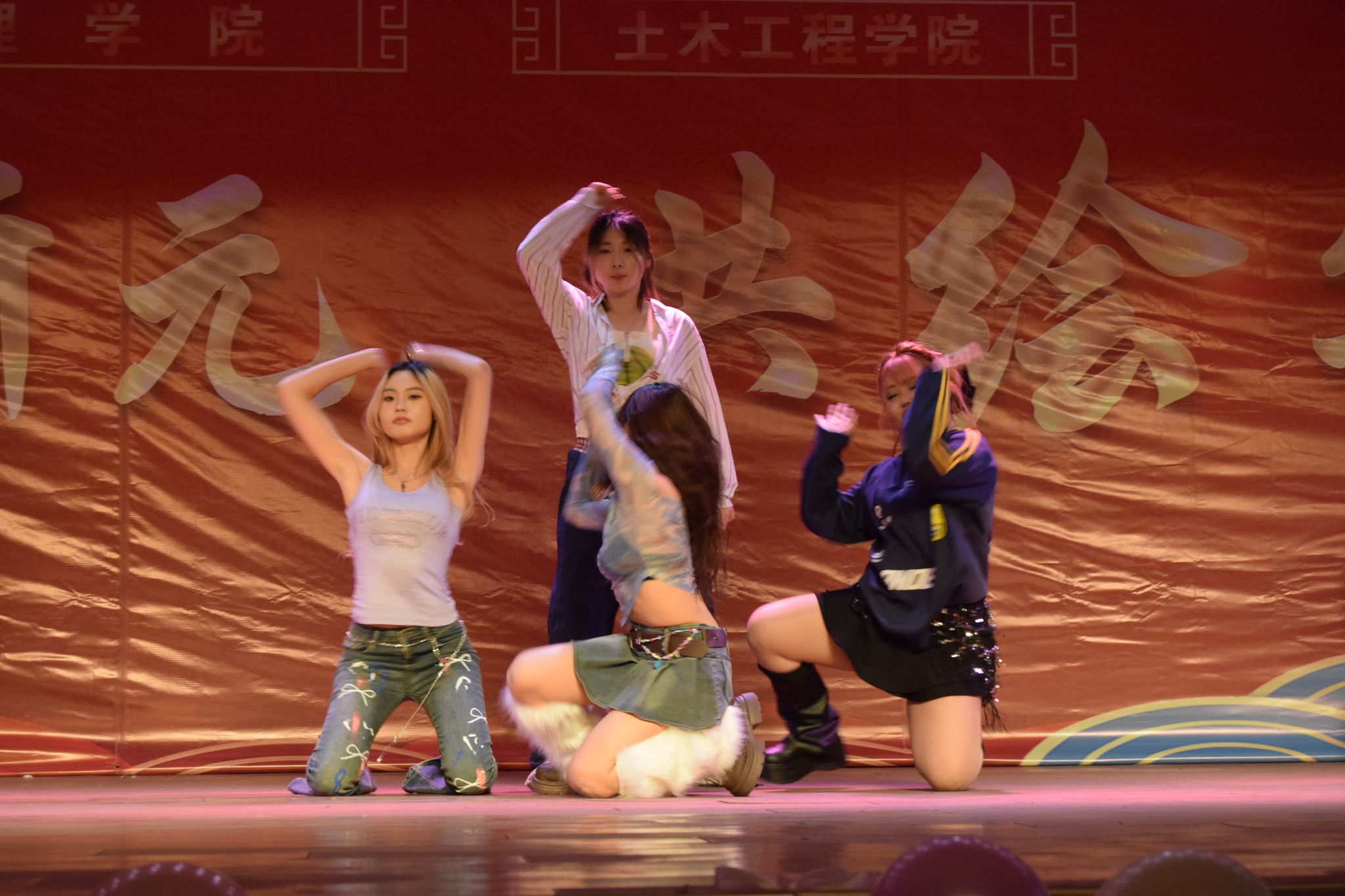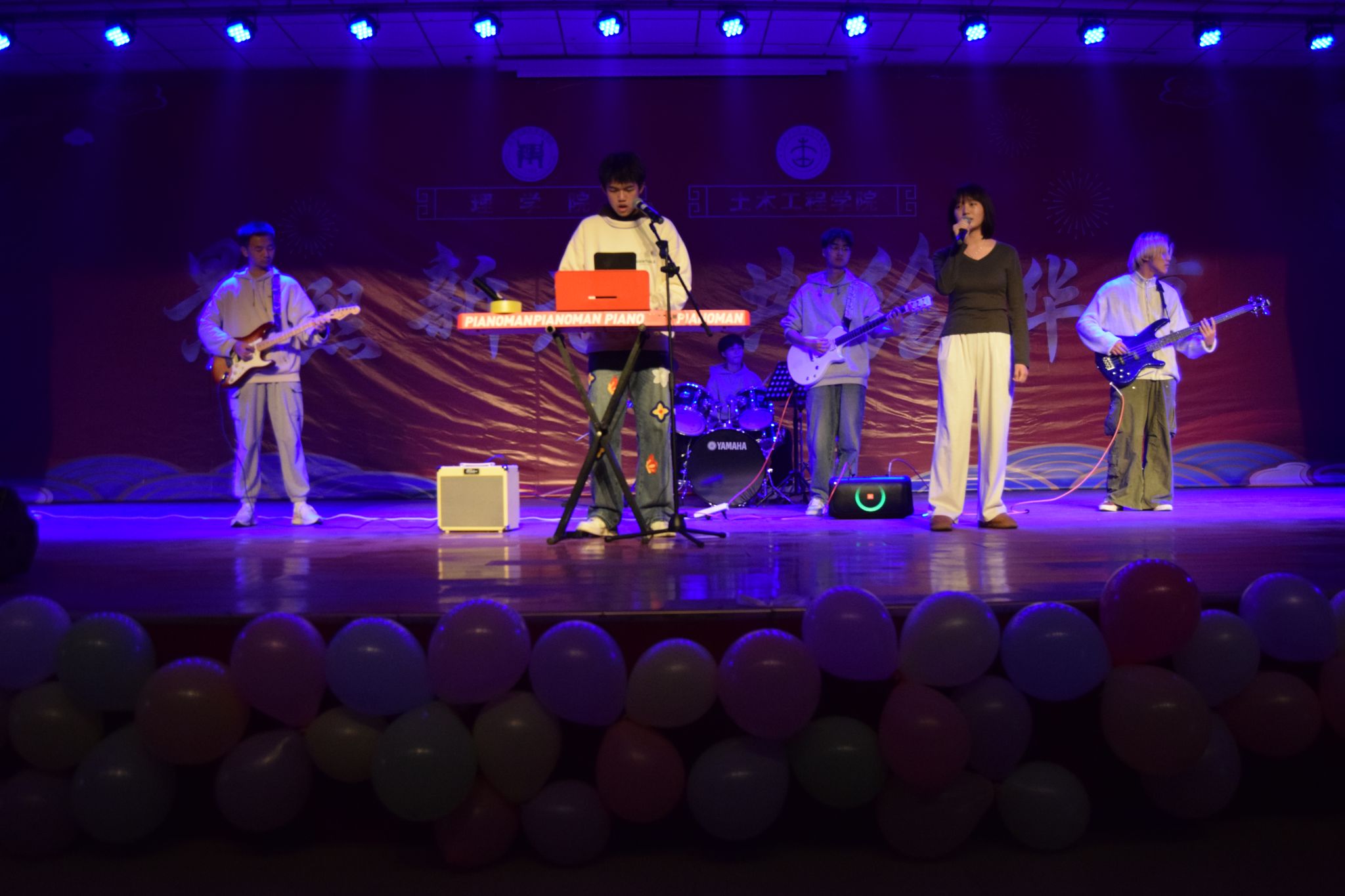本場(chǎng)晚會(huì)分為“燃?jí)粜律薄坝縿?dòng)青春”兩個(gè)篇章。理學(xué)院輔導(dǎo)員李猛彈奏的《琵琶語(yǔ)》作為開(kāi)場(chǎng),街舞《whiplash》以動(dòng)感的節(jié)奏和炫酷的舞姿贏得了觀眾的陣陣掌聲,歌曲《于是》《My heart will go on》《就是愛(ài)你》深情而富有感染力,小品《非禮勿擾》幽默詼諧,小品《時(shí)間都去哪兒了》喚起了大家對(duì)日常學(xué)習(xí)生活時(shí)間的珍惜與回憶,敦煌舞、新疆舞和拉丁舞的《舞蹈串燒》將現(xiàn)場(chǎng)氣氛推向高潮,展現(xiàn)了同學(xué)們青春的活力與激情。進(jìn)入下篇,歌曲《你還要我怎樣》《如果有來(lái)生》《走在冷風(fēng)中》《Jar of love》以深情的歌聲打動(dòng)了每一個(gè)同學(xué)的心,《穿越古今,衣袂飄飄》通過(guò)精彩的走秀展示了古今服飾的演變與魅力,話(huà)劇《黑天鵝王子和七個(gè)黃金礦工》創(chuàng)意獨(dú)特笑料不斷,現(xiàn)代舞《New dance》再次點(diǎn)燃了現(xiàn)場(chǎng)的熱情,土木工程學(xué)院輔導(dǎo)員張曼帶來(lái)的鋼琴獨(dú)奏《這世界那么多人》琴聲優(yōu)美,傳遞著愛(ài)與希望。最后,F(xiàn)lipped!樂(lè)隊(duì)一首《花?!芬詺g快的旋律和精彩的表演為晚會(huì)畫(huà)上了完美的句號(hào)。晚會(huì)還穿插了激動(dòng)人心的抽獎(jiǎng)環(huán)節(jié),9名幸運(yùn)觀眾獲得“幸運(yùn)大禮包”。