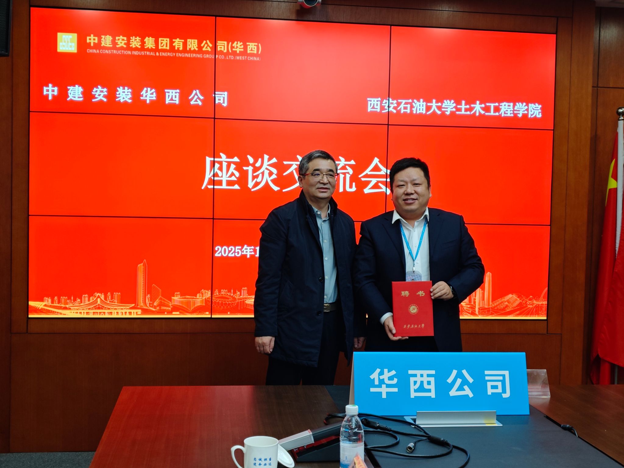代建波介紹了土木工程學院的基本情況,并圍繞人才培養(yǎng)、學科特色和科研情況等方面進行了詳細介紹。崔瑩介紹了土木工程和工程管理兩個本科專業(yè)的培養(yǎng)方向,以及本科留學生的培養(yǎng)理念。李俊亭在總結(jié)中指出,一是將聯(lián)合申報科研項目作為首要任務,雙方計劃整合資源、發(fā)揮各自優(yōu)勢,共同爭取更多的科研項目支持;二是依托企業(yè)博士后流動站進行校企聯(lián)合,憑借雙方在科研領(lǐng)域的專業(yè)實力和創(chuàng)新思維,力求在關(guān)鍵領(lǐng)域取得創(chuàng)新性突破;三是期望充分發(fā)揮企業(yè)在人才、技術(shù)、資金以及市場渠道等方面的獨特優(yōu)勢,構(gòu)建“科學家+工程師”團隊,形成強大的協(xié)同效應,推動科研事業(yè)朝著高質(zhì)量方向蓬勃發(fā)展。最后,李俊亭為倪琪昌頒發(fā)了我校兼職碩士生導師的聘書。