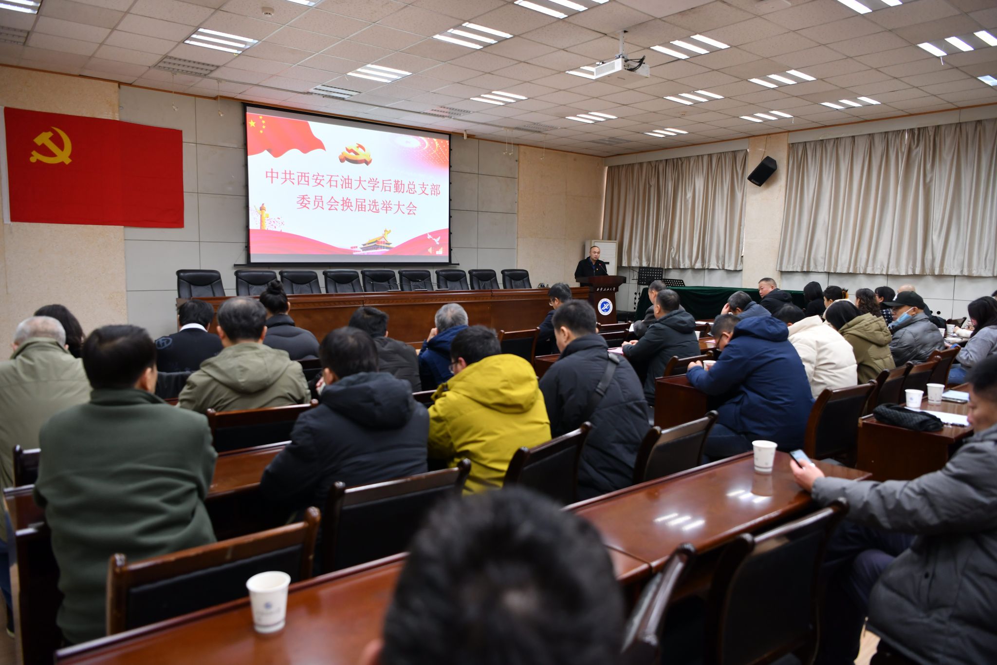 1月8日上午,中共西安石油大學后勤總支部委員會換屆選舉大會在雁塔校區(qū)西階會議中心第三會議室隆重召開。校黨委委員、副校長張驍勇出席大會并講話。后勤處全體黨員同志參加大會,并邀請民主黨派代表、群眾代表列席參加。大會由后勤處處長劉笛主持。大會在莊嚴的國歌聲中拉開帷幕。