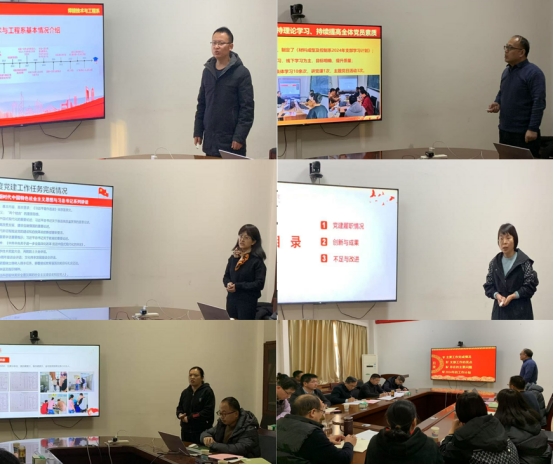 述職評議會上,強(qiáng)偉、徐向前、劉文婷、張雅妮、潘瑞娟等5位教工黨支部書記分別從支部年度黨建工作任務(wù)完成情況、圍繞中心工作抓黨建情況、創(chuàng)新及亮點(diǎn)工作、存在的不足及努力方向等四個方面,全面報告了一年來黨支部工作的開展情況。
