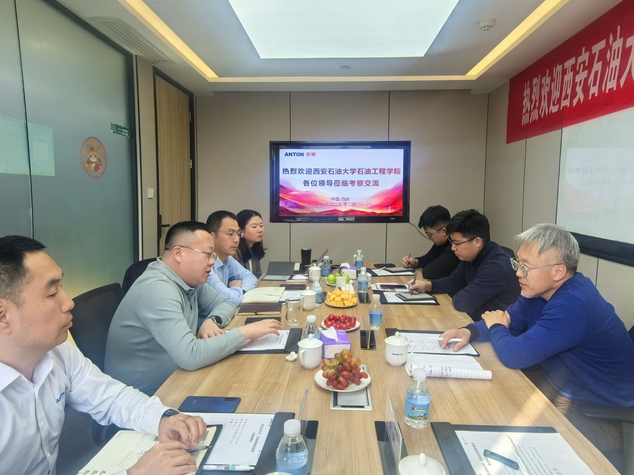 218日,司馬文龍、張浩然一行赴安東石油技術(shù)集團開展校企合作座談。座談會上,司馬文龍對企業(yè)的熱情接待表示感謝,他指出,校企雙方因油而生、因油而建、因油而興,要進(jìn)一步加強溝通合作,一是深化產(chǎn)教融合,強化人才培養(yǎng),建立常態(tài)化校企人才共育機制;二是推動科研合作,促進(jìn)技術(shù)創(chuàng)新成果轉(zhuǎn)化;三是打造實習(xí)就業(yè)一體化平臺,實現(xiàn)校企優(yōu)勢互補。張浩然詳細(xì)介紹了學(xué)院2025屆畢業(yè)生的專業(yè)分布、培養(yǎng)特色及就業(yè)需求,現(xiàn)場推薦了春招首批投遞簡歷的優(yōu)秀學(xué)子。安東石油技術(shù)集團市場總監(jiān)、長慶業(yè)務(wù)部總經(jīng)理彭飛全面介紹了企業(yè)發(fā)展現(xiàn)狀及戰(zhàn)略布局,通奧檢測集團西北新業(yè)務(wù)銷售部總經(jīng)理李文剛分享了企業(yè)創(chuàng)新人才管理理念,油氣田開發(fā)研究院招聘經(jīng)理劉松重點解讀了2025年人才招聘計劃及崗位需求標(biāo)準(zhǔn)。