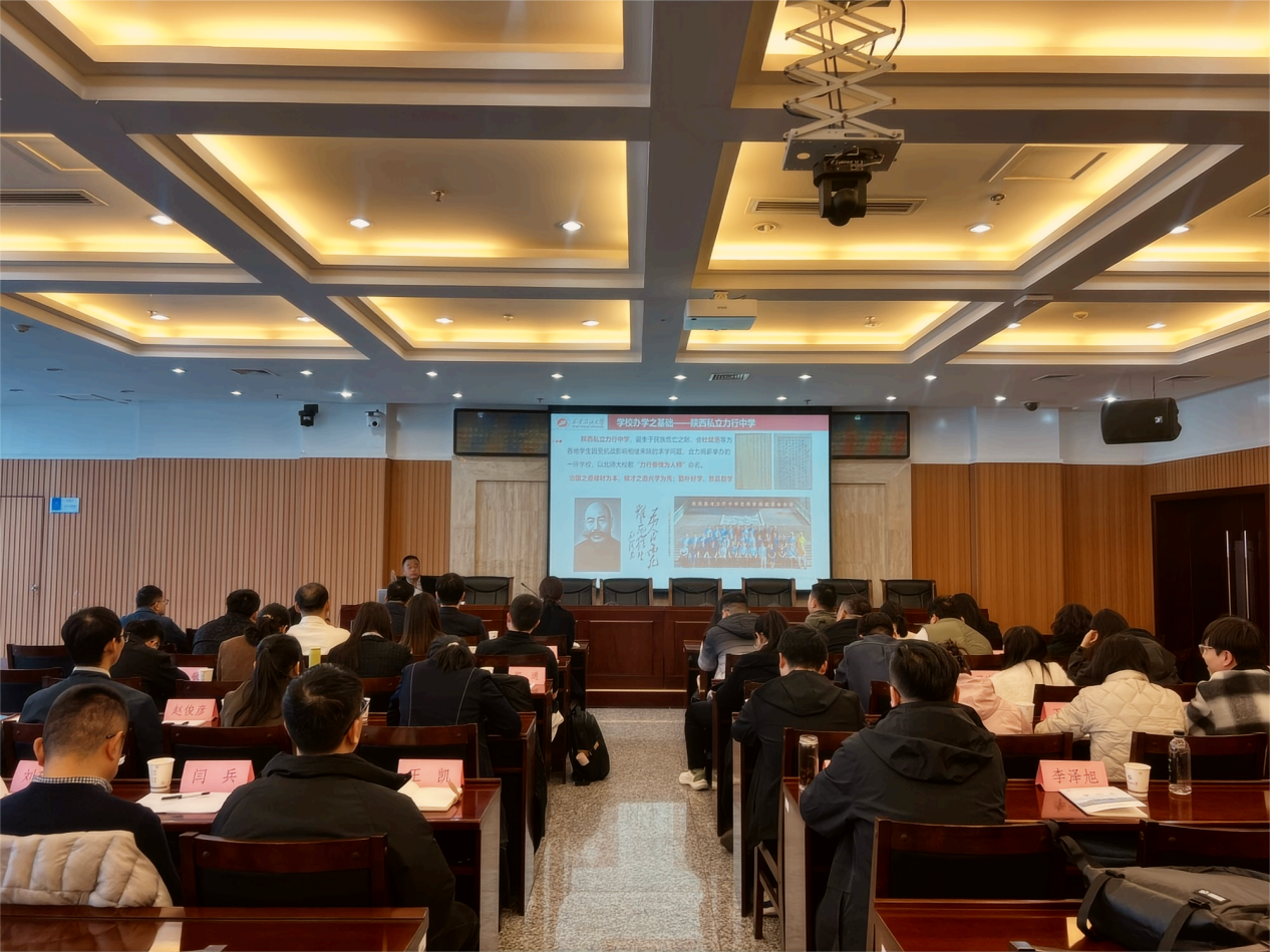程永清以《賡續(xù)紅色血脈 做好學(xué)生成長(zhǎng)成才引路人——站在歷史角度沿著先輩足跡展望學(xué)校未來(lái)》為題,從學(xué)校成立的宏大歷史背景導(dǎo)入,對(duì)學(xué)校五個(gè)階段的發(fā)展歷程進(jìn)行了細(xì)致深入的介紹,圍繞辦學(xué)成果、校園文化、辦學(xué)精神、校風(fēng)校訓(xùn)等方面,以及學(xué)校第三次黨代會(huì)以來(lái)的辦學(xué)成績(jī)進(jìn)行了概述,同時(shí)擘畫(huà)了學(xué)校未來(lái)發(fā)展的藍(lán)圖,為新入職教師講授了一場(chǎng)生動(dòng)的校史校情課。他以珍貴的歷史照片和視頻材料為線索,講解了學(xué)校的辦學(xué)歷史,解讀了學(xué)校的辦學(xué)理念。
