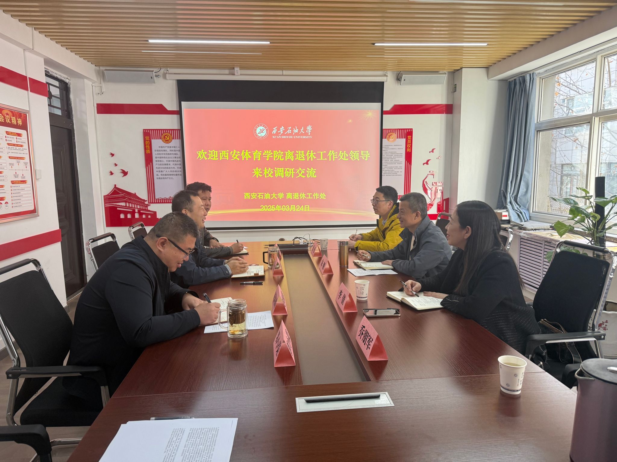 近日,西安體育學院離退休工作處處長、黨委書記朱艦率 3 人團隊,專程來到我校離退休工作處開展交流活動。雙方聚焦離退休工作,進行了深入的探討與經驗分享,旨在通過校際間的交流互鑒,推動離退休服務管理水平邁向新高度。