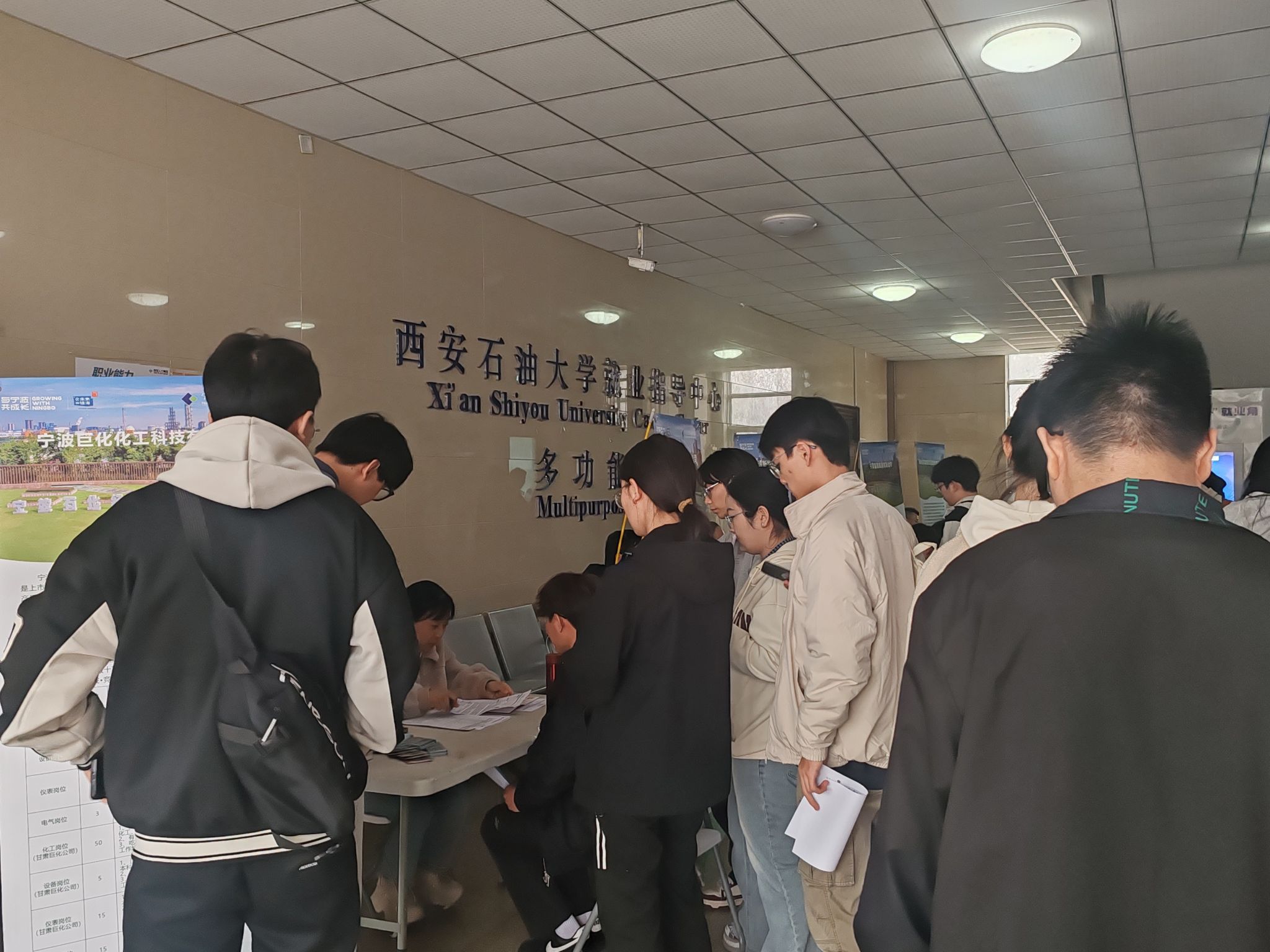 3月27日,我校在鄠邑校區(qū)崇文樓118報(bào)告廳舉辦“奔甬而來(lái)@未來(lái)IN鎮(zhèn)?!薄G色石化產(chǎn)業(yè)鏈重點(diǎn)企業(yè)2025屆春季校園專場(chǎng)招聘會(huì)。包括中石化鎮(zhèn)海煉化、寧波巨化化工、寧波博匯化工等10余家行業(yè)龍頭企業(yè)參會(huì)。我校化學(xué)化工學(xué)院、機(jī)械工程學(xué)院、電子工程學(xué)院、計(jì)算機(jī)學(xué)院等390余名畢業(yè)生參加招聘。