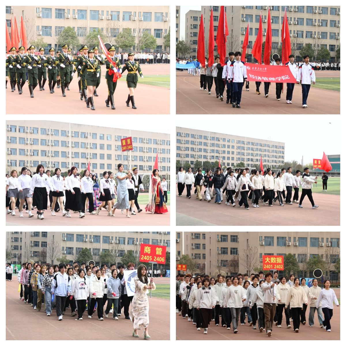 上午8點(diǎn)20分,伴隨著國(guó)旗護(hù)衛(wèi)隊(duì)穩(wěn)健而充滿力量的步伐,運(yùn)動(dòng)會(huì)正式拉開帷幕。院旗方陣、裁判員方陣、運(yùn)動(dòng)員方陣、班級(jí)方陣依次莊嚴(yán)入場(chǎng),各方陣展現(xiàn)出昂揚(yáng)的斗志和蓬勃的朝氣,體現(xiàn)了經(jīng)管學(xué)院學(xué)子勇往直前的精神風(fēng)采。