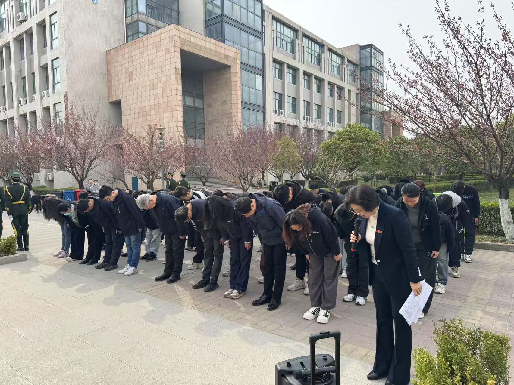在莊嚴肅靜的氛圍中,全體師生默哀一分鐘,向杜斌丞先生致以最深切的哀思。默哀結束后,全體師生面向杜斌丞烈士雕像三鞠躬,表達了對杜斌丞烈士的崇高敬意。