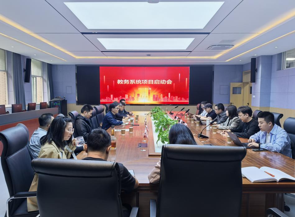2025年4月9日上午,學校在鄠邑校區(qū)博覽樓A116室召開教務(wù)系統(tǒng)項目啟動會。教務(wù)處全體處科級干部、實驗室管理處、信息化建設(shè)與管理處、高教研究與評估督導中心相關(guān)負責人,超星集團陜西分公司總經(jīng)理高華、副總經(jīng)理曹瑾、項目總監(jiān)何中楷及相關(guān)工作人員參加了會議。會議由教務(wù)處處長時保宏主持。