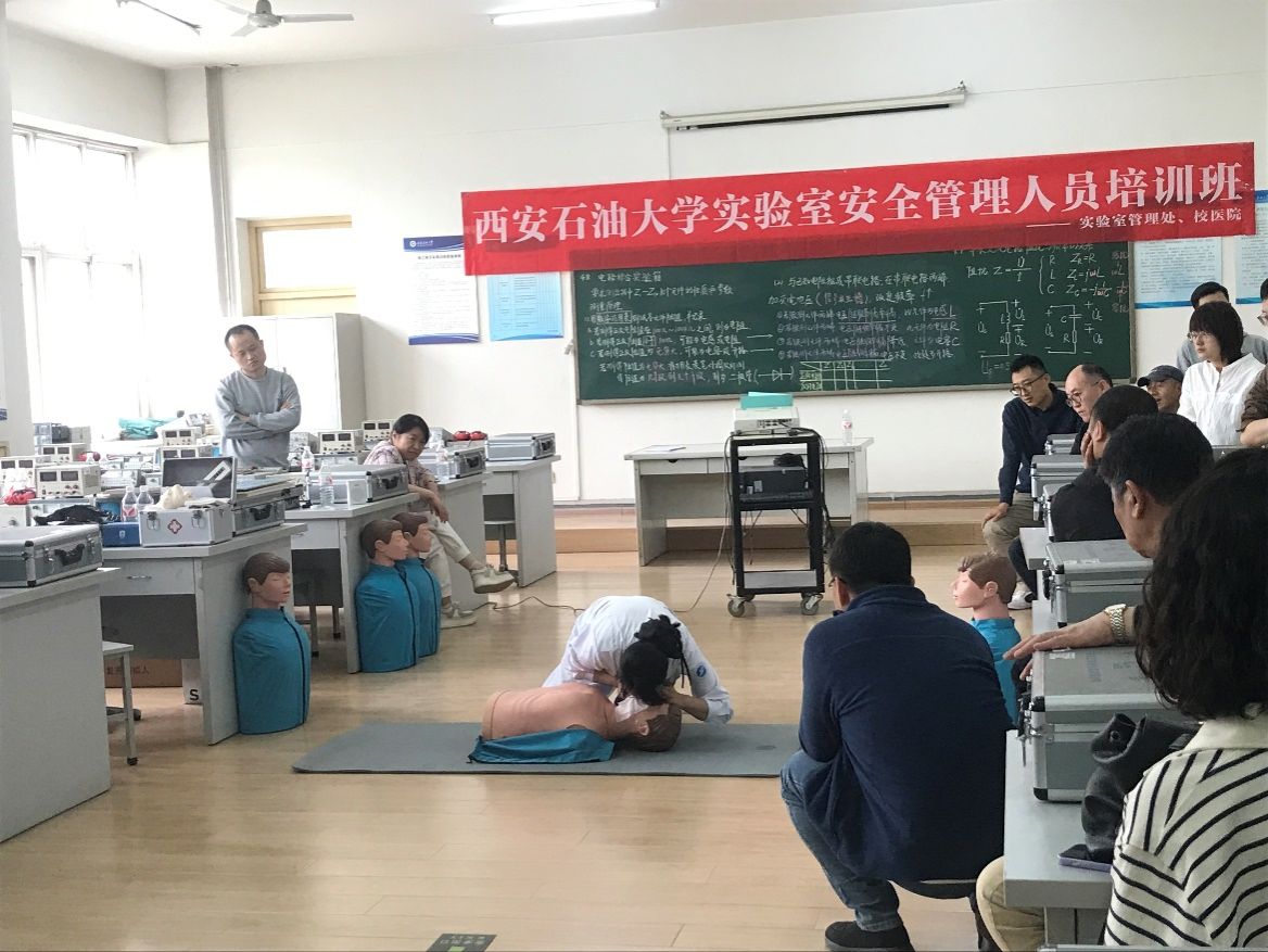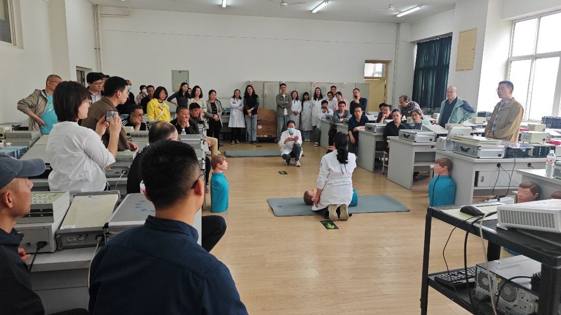 培訓(xùn)內(nèi)容二—校園應(yīng)急救護(hù)培訓(xùn)。校醫(yī)院主管護(hù)師、陜西省紅十字救護(hù)師宋彥霞、解姣兩位老師為全體參訓(xùn)人員進(jìn)行了心肺復(fù)蘇技術(shù)(CPR)和自動體外除顫儀(AED)的使用、氣道異物梗阻的應(yīng)急處理(海姆立克急救法)外傷止血與包扎技巧、燒燙傷的科學(xué)處理等緊急救護(hù)知識和技能的培訓(xùn)。她們通過生動的案例分析和實景演示,大家詳細(xì)講解了各類突發(fā)情況的處置要點和注意事項,令大家受益匪淺。