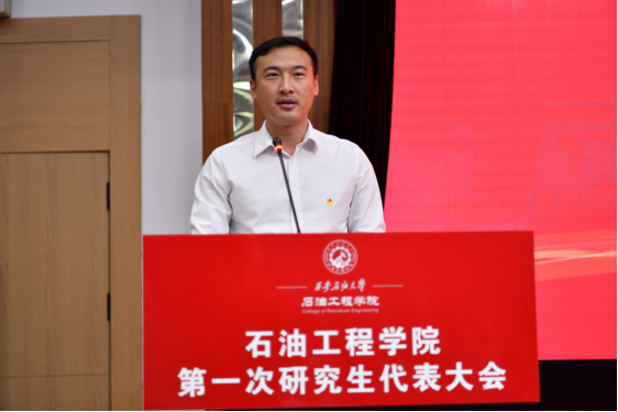 石油工程學院黨委書記司馬文龍代表學院黨委向大會的勝利召開表示熱烈祝賀,向全體與會代表致以親切問候。他指出,本次大會是以習近平新時代中國特色社會主義思想為指導,深入學習貫徹黨的二十屆三中全會和全國教育大會精神,深刻領(lǐng)會習近平總書記關(guān)于青年工作的重要思想,認真學習學校第三次黨代會精神的一次重要的大會。大會的主要任務是討論今后一個時期研究生會工作的目標方向,更好地完善研究生培養(yǎng)體系,搭建研究生交流溝通平臺,促進研究生成長成才,團結(jié)帶領(lǐng)全院研究生為建成特色鮮明的高水平教學研究型大學積極作為,為實現(xiàn)中華民族偉大復興“中國夢”貢獻青春力量。他強調(diào),與會代表要以嚴謹求實的態(tài)度,認真履行職責,圓滿完成大會的各項任務,把本次大會開成民主、和諧、團結(jié)、奮進的大會。