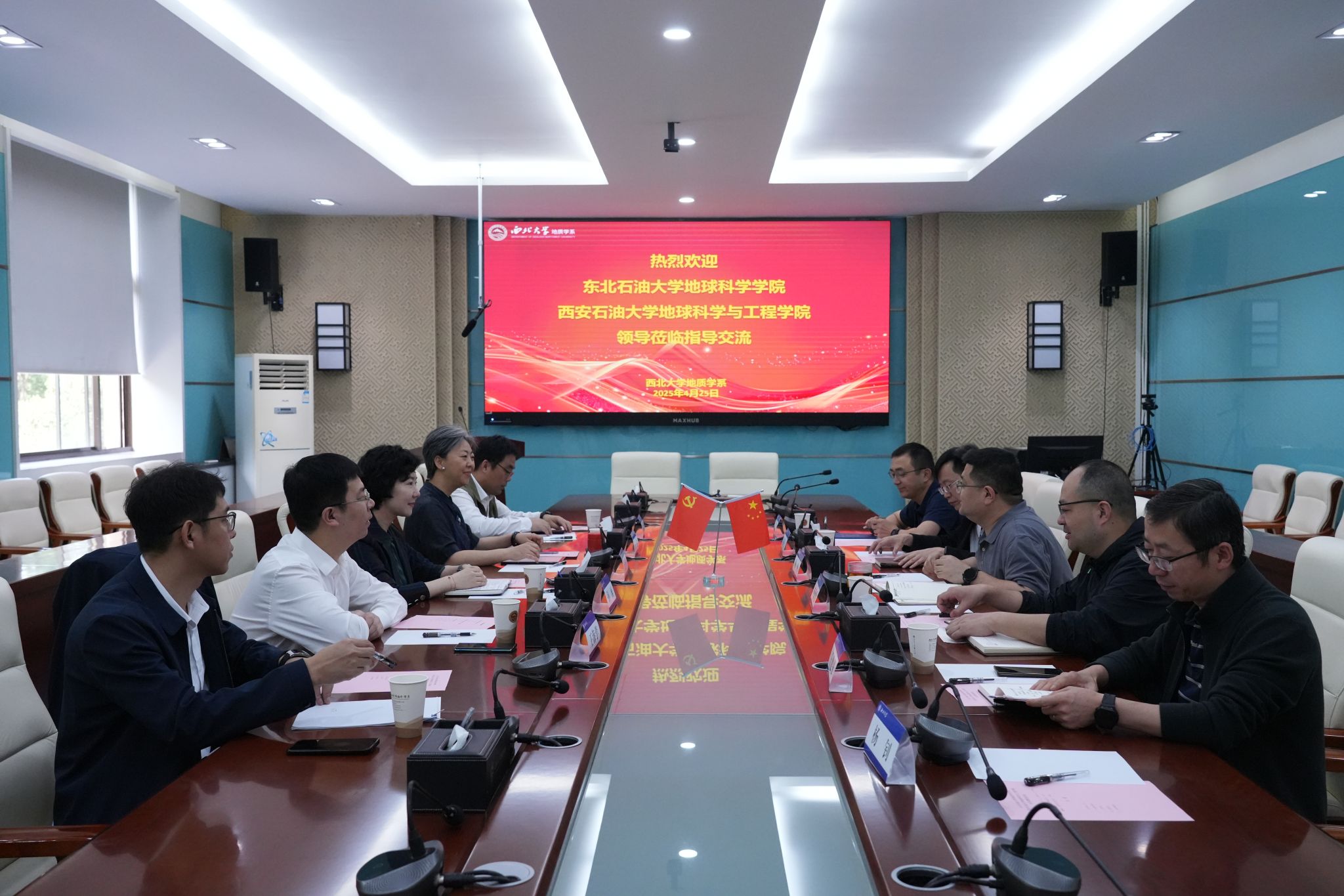 為深入貫徹落實(shí)黨的二十屆三中全會(huì)和全國(guó)教育大會(huì)精神,加強(qiáng)拔尖人才培養(yǎng),4月25日上午,地球科學(xué)與工程學(xué)院黨委書記高黎、院長(zhǎng)宋立軍,聯(lián)合東北石油大學(xué)地球科學(xué)學(xué)院調(diào)研組,赴西北大學(xué)地質(zhì)學(xué)系開展“學(xué)科交叉賦能人才培養(yǎng),黨建引領(lǐng)推動(dòng)高質(zhì)量發(fā)展”專題調(diào)研,聚焦新時(shí)代地質(zhì)學(xué)科建設(shè)、拔尖創(chuàng)新人才培養(yǎng)體系構(gòu)建及黨建業(yè)務(wù)深度融合等,進(jìn)一步探討石油地學(xué)領(lǐng)域校際協(xié)同發(fā)展新模式。東北石油大學(xué)地球科學(xué)學(xué)院黨委書記韋丹寧、院長(zhǎng)孫雨、副院長(zhǎng)王海學(xué),西北大學(xué)地質(zhì)學(xué)系黨委副書記李政倫,副主任龍曉平、王建強(qiáng)、李青彥等參加會(huì)議。會(huì)議由西北大學(xué)地質(zhì)學(xué)系黨委書記陳峰主持。