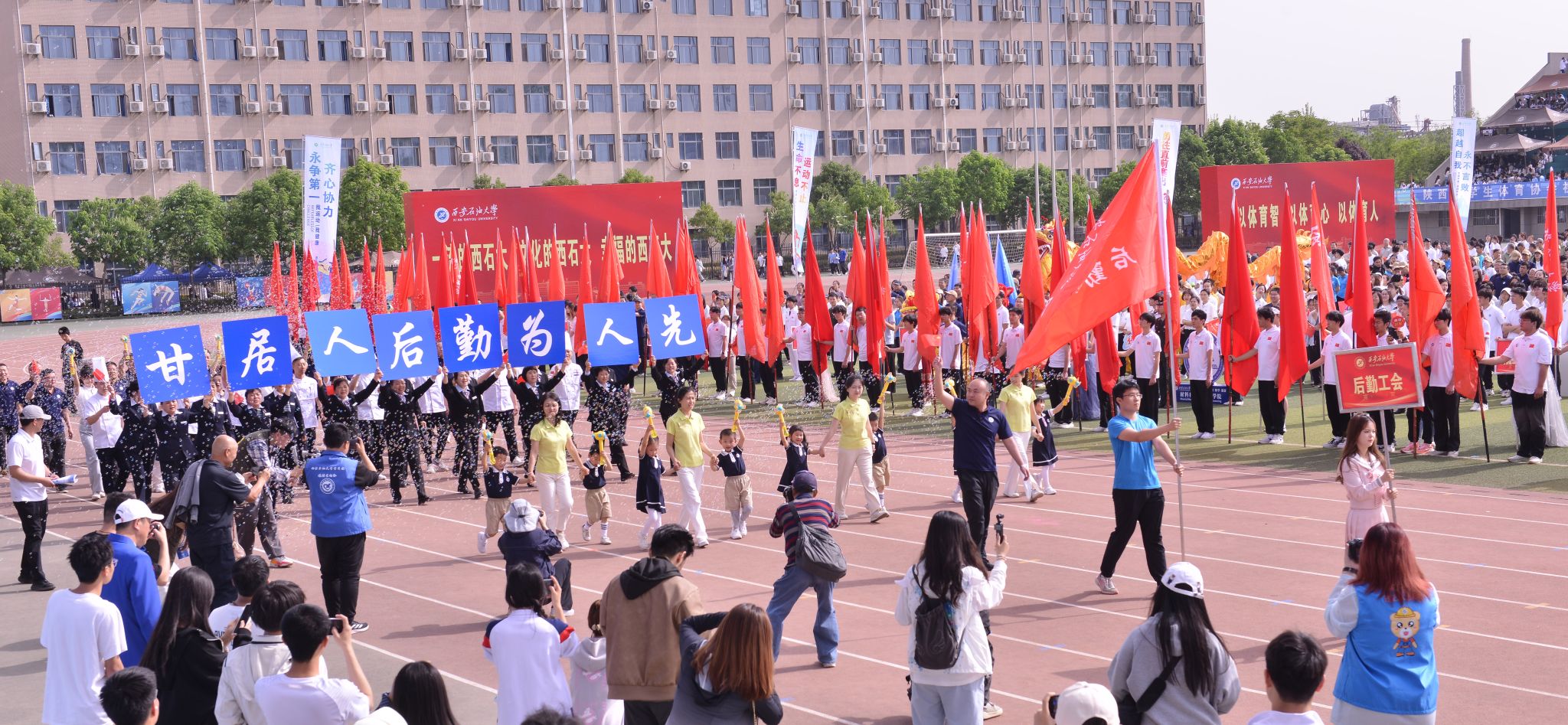 4月25日,在鄠邑校區(qū)東體育場舉辦的我校第四十四屆田徑運(yùn)動會圓滿收官。后勤處工會代表隊(duì)?wèi){借默契配合和奮勇拼搏,再次摘得教職工運(yùn)動會團(tuán)體總分桂冠,用實(shí)力詮釋后勤隊(duì)伍的昂揚(yáng)風(fēng)貌。