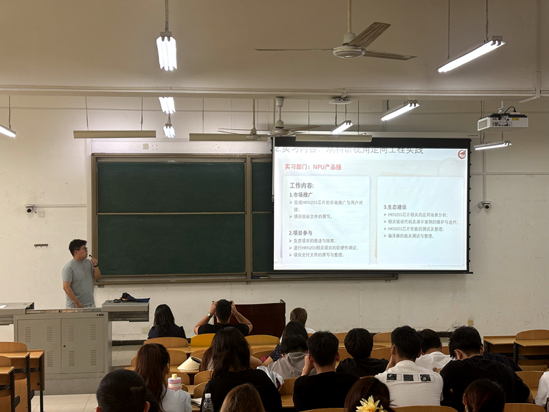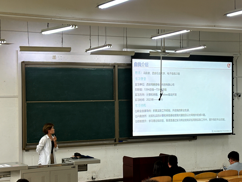 隨后,杜明輝進(jìn)行了講解。他從公司科研環(huán)境、合作科研基地、服務(wù)平臺以及主要研發(fā)方向等方面,向同學(xué)們詳細(xì)介紹了西安翔騰微電子科技有限公司的基本情況和實習(xí)情況。作為與學(xué)校保持了五年校企合作關(guān)系的企業(yè),公司在行業(yè)內(nèi)成績斐然,相信會為同學(xué)們的實習(xí)實踐提供廣闊的空間。學(xué)校研究生的加入也將為公司持續(xù)注入人才活力。