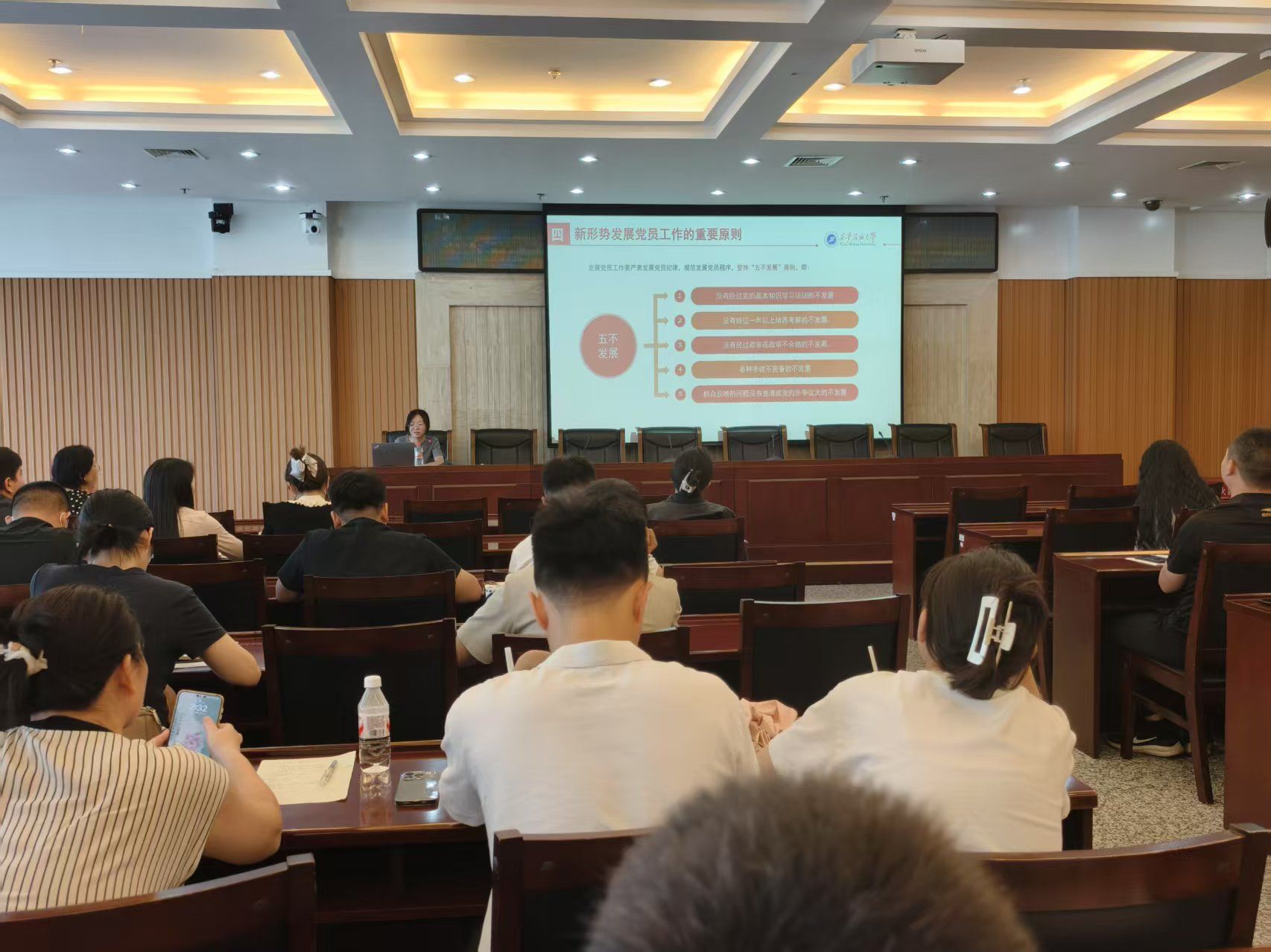 魏夢(mèng)媛從新形勢(shì)下發(fā)展黨員的工作要求出發(fā),詳細(xì)解讀了《中國共產(chǎn)黨章程》和《中國共產(chǎn)黨發(fā)展黨員工作細(xì)則》等黨內(nèi)法規(guī),強(qiáng)調(diào)了發(fā)展黨員工作的“控制總量、優(yōu)化結(jié)構(gòu)、提高質(zhì)量、發(fā)揮作用”十六字總要求。她通過PPT展示和現(xiàn)場(chǎng)講解相結(jié)合的方式,將發(fā)展黨員工作細(xì)分為五個(gè)階段、25個(gè)具體步驟,逐一進(jìn)行了剖析和說明,就發(fā)展對(duì)象的確定和考察、預(yù)備黨員的接收、教育考察和轉(zhuǎn)正等關(guān)鍵環(huán)節(jié)進(jìn)行了重點(diǎn)講解,并通過案例分析,指出了在黨員發(fā)展過程中容易出現(xiàn)的錯(cuò)誤和問題,提出了相應(yīng)的解決措施和建議。
