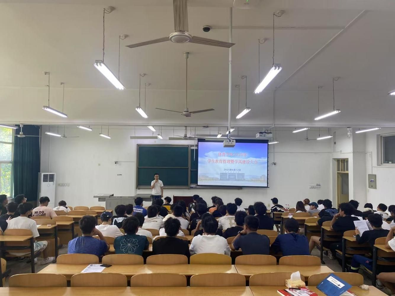 為進一步加強學(xué)生教育管理和學(xué)風(fēng)建設(shè),引導(dǎo)學(xué)生樹立正確的學(xué)習(xí)態(tài)度和營造良好的考風(fēng)考紀環(huán)境,6月12日下午,體育學(xué)院在博思樓B121教室召開學(xué)生教育管理暨學(xué)風(fēng)建設(shè)大會,學(xué)院黨總支書記茍毅飛、學(xué)生工作辦公室主任姜國平、輔導(dǎo)員張澤正及2022級、2023級、2024級本科生參加大會。