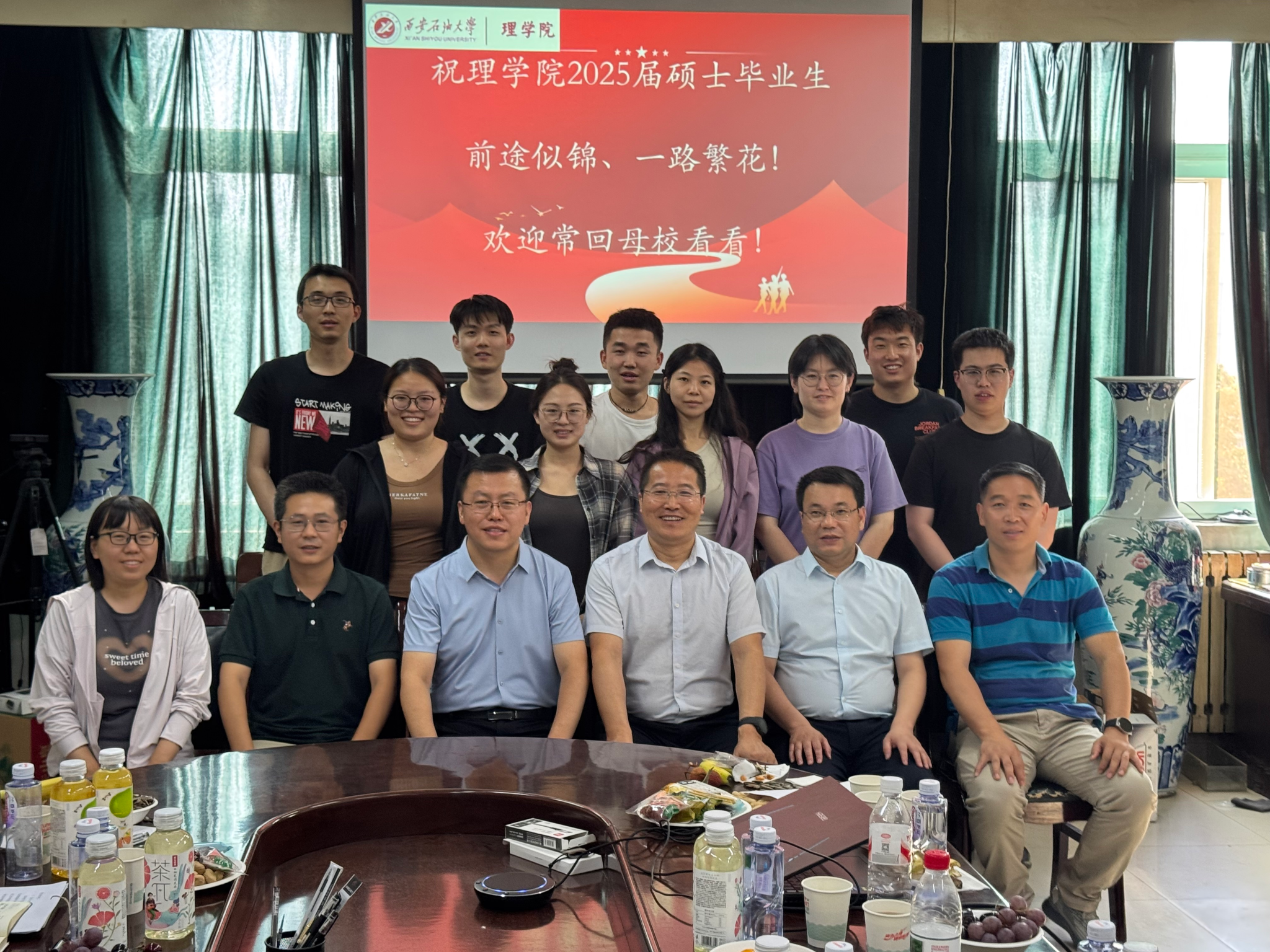 座談會(huì)在熱烈的掌聲中落下帷幕,全體參會(huì)人員合影留念,定格這一充滿溫情與希望的時(shí)刻。此次座談會(huì)不僅為畢業(yè)生們提供了分享與交流的平臺(tái),更為理學(xué)院研究生教育管理工作的優(yōu)化升級(jí)奠定了基礎(chǔ),相信在師生的共同努力下,理學(xué)院的未來將更加輝煌。